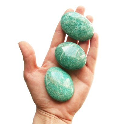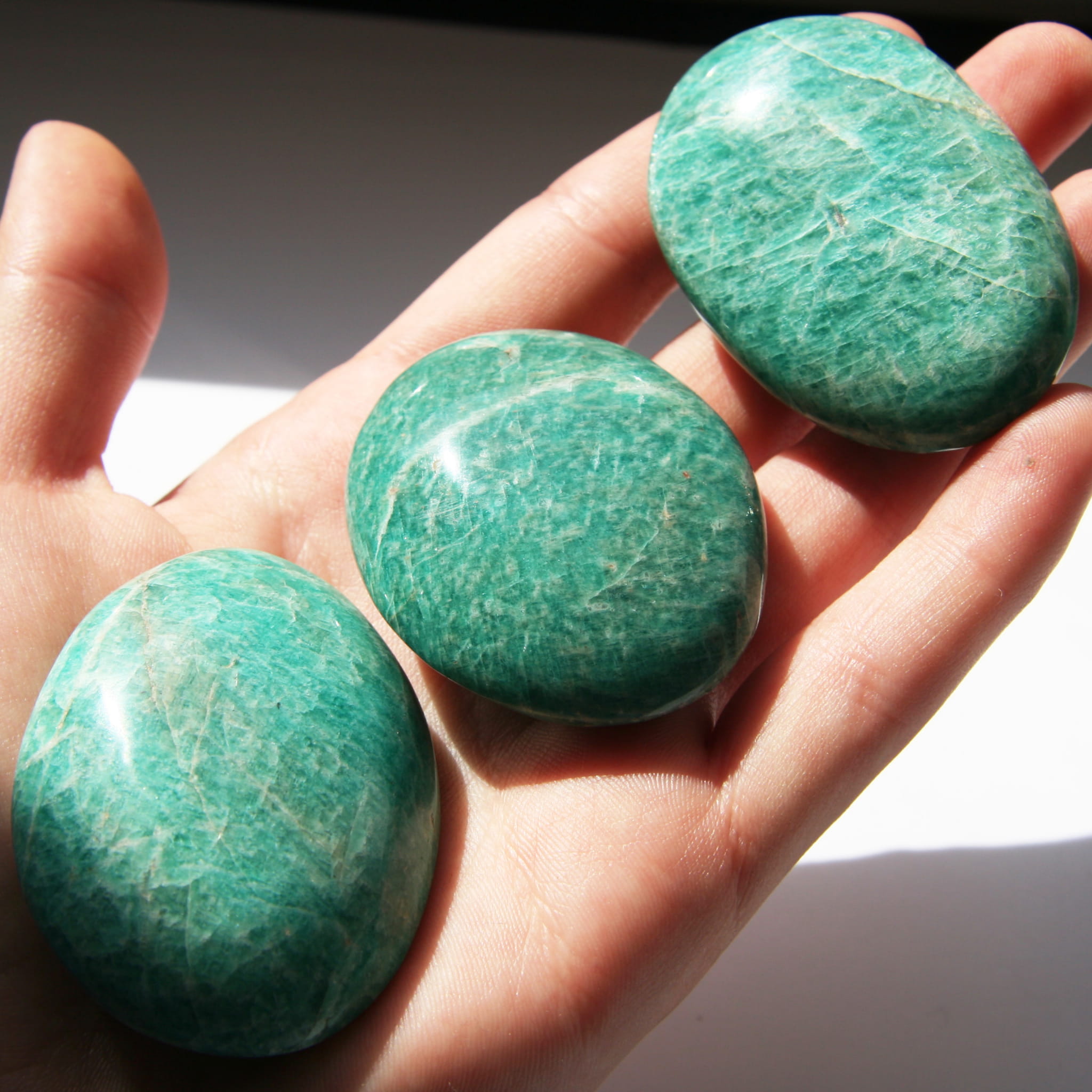Oferujemy polerowane kamienie wykonane z naturalnego amazonitu, ukształtowane w owalną, lekko spłaszczoną formę. Każdy kamień posiada idealnie gładką, lśniącą powierzchnię, która jest przyjemna w dotyku. Polerowanie pięknie eksponuje charakterystyczne dla amazonitu zielone lub niebiesko-zielone zabarwienie, często wzbogacone o naturalne, białe smugi lub nieregularne wzory, które tworzą unikalne kompozycje. Każdy egzemplarz jest niepowtarzalny pod względem dokładnego odcienia, wzoru oraz precyzji owalnego kształtu.
