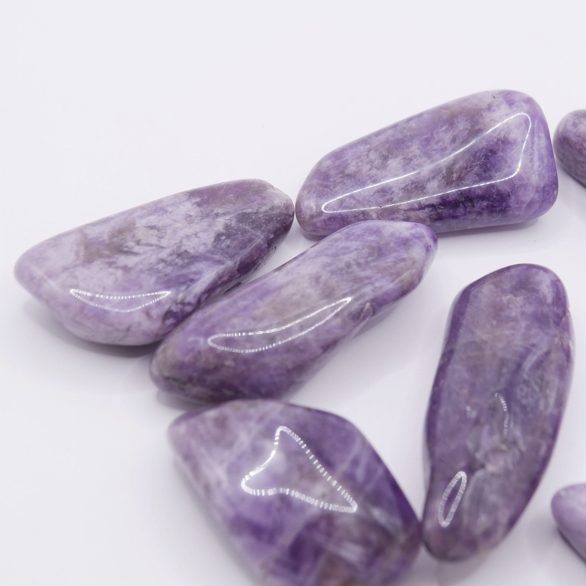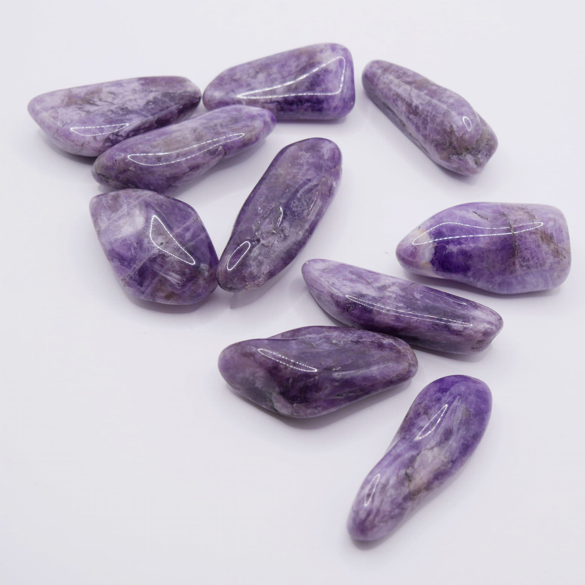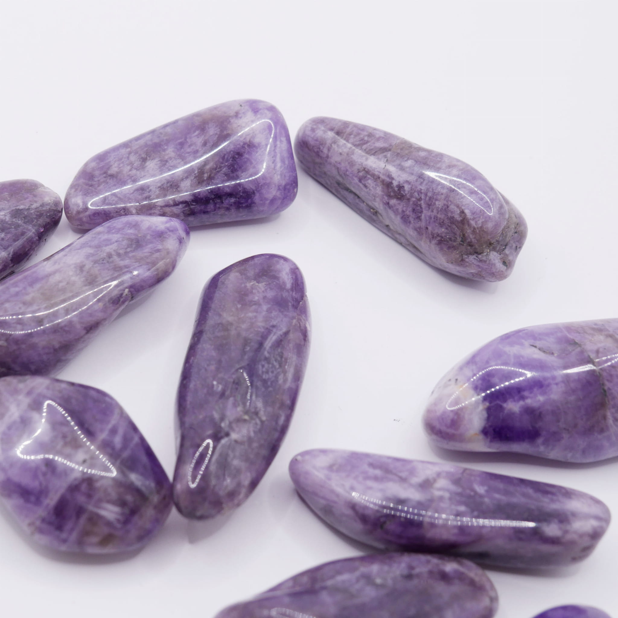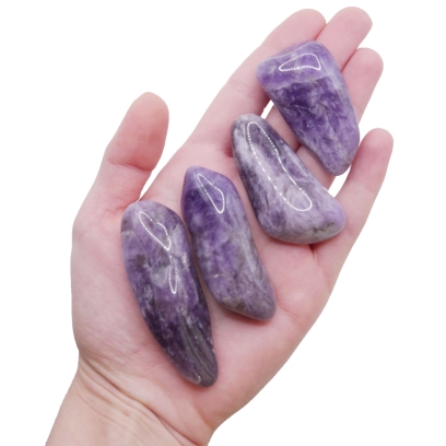 Oferujemy duże, polerowane otoczaki z naturalnego ametystu, mieszczące się w przedziale długości od 50 do 60 mm. Te okazałe kamienie, wygładzone w procesie bębnowania, charakteryzują się gładką powierzchnią i bogatą paletą fioletowych barw – od delikatnego wrzosu po głęboką, ciemną purpurę. Ze względu na naturalne pochodzenie i znaczny rozmiar, w strukturze kamieni mogą być widoczne charakterystyczne inkluzje, przebarwienia czy strefowe zmiany koloru, co czyni każdy egzemplarz niepowtarzalnym.