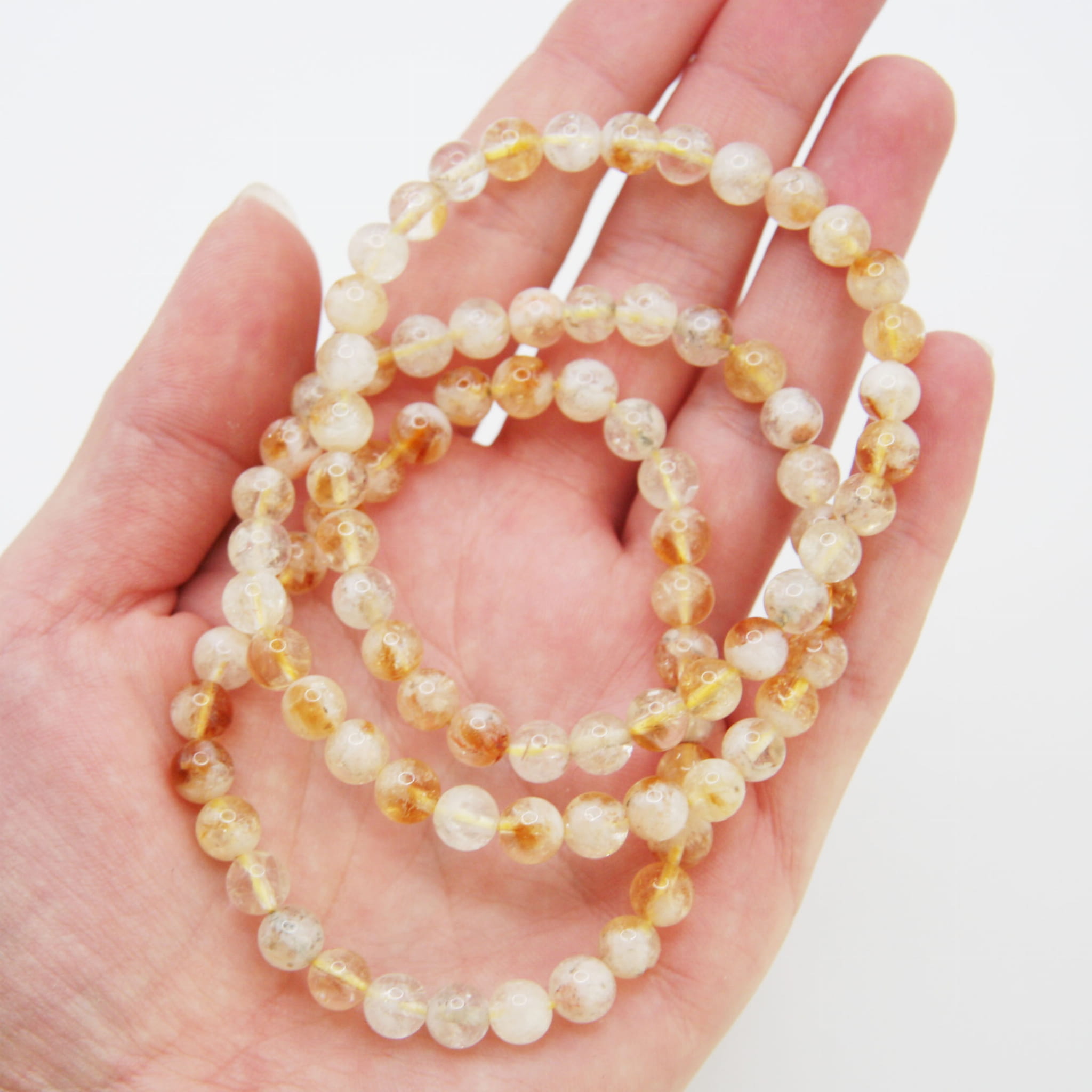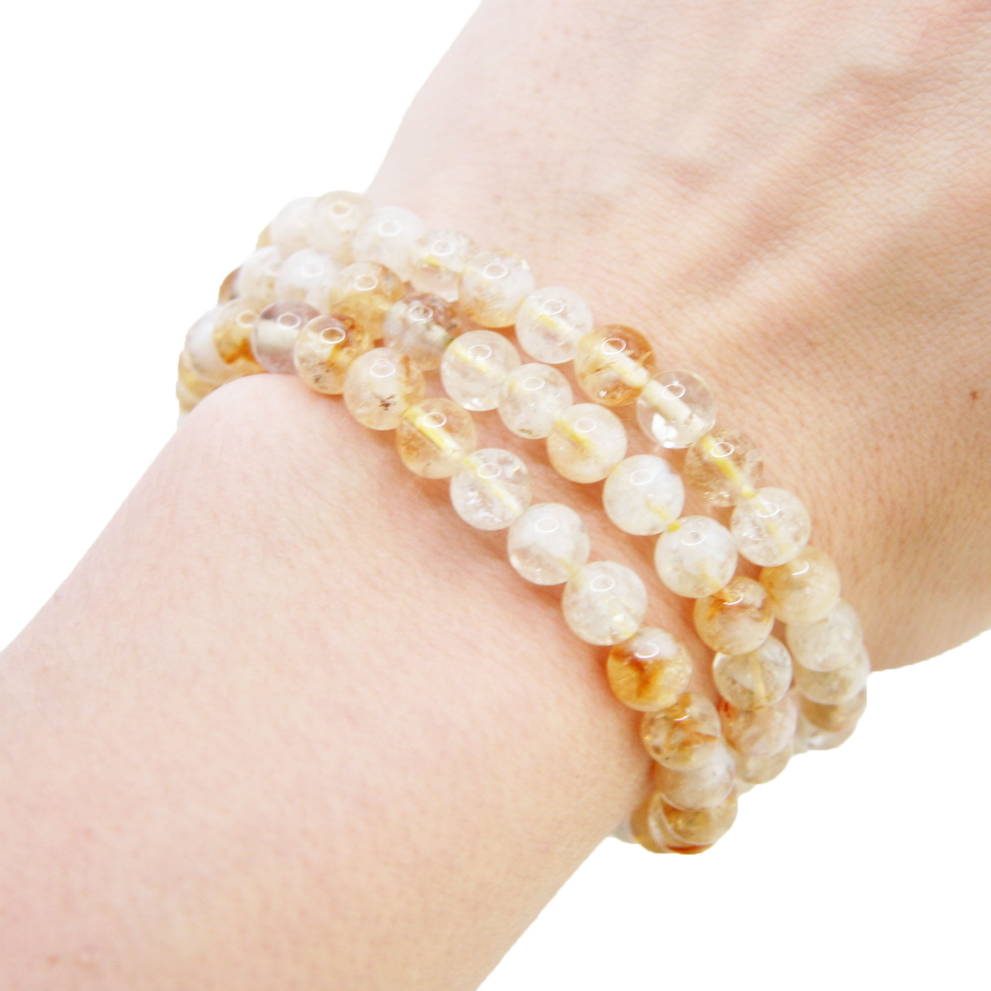 Oferujemy elastyczną bransoletkę złożoną z okrągłych, polerowanych koralików z naturalnego cytrynu. Bransoletka ma długość około 18 cm i dzięki wytrzymałej gumce jubilerskiej łatwo dopasowuje się do nadgarstka. Koraliki charakteryzują się jasnym, słonecznym zabarwieniem w ciepłych odcieniach żółci. Ze względu na naturalne pochodzenie kamienia, poszczególne koraliki mogą różnić się odcieniem, stopniem klarowności i wewnętrznymi strukturami (inkluzjami), co dodaje każdej bransoletce unikalnego charakteru.