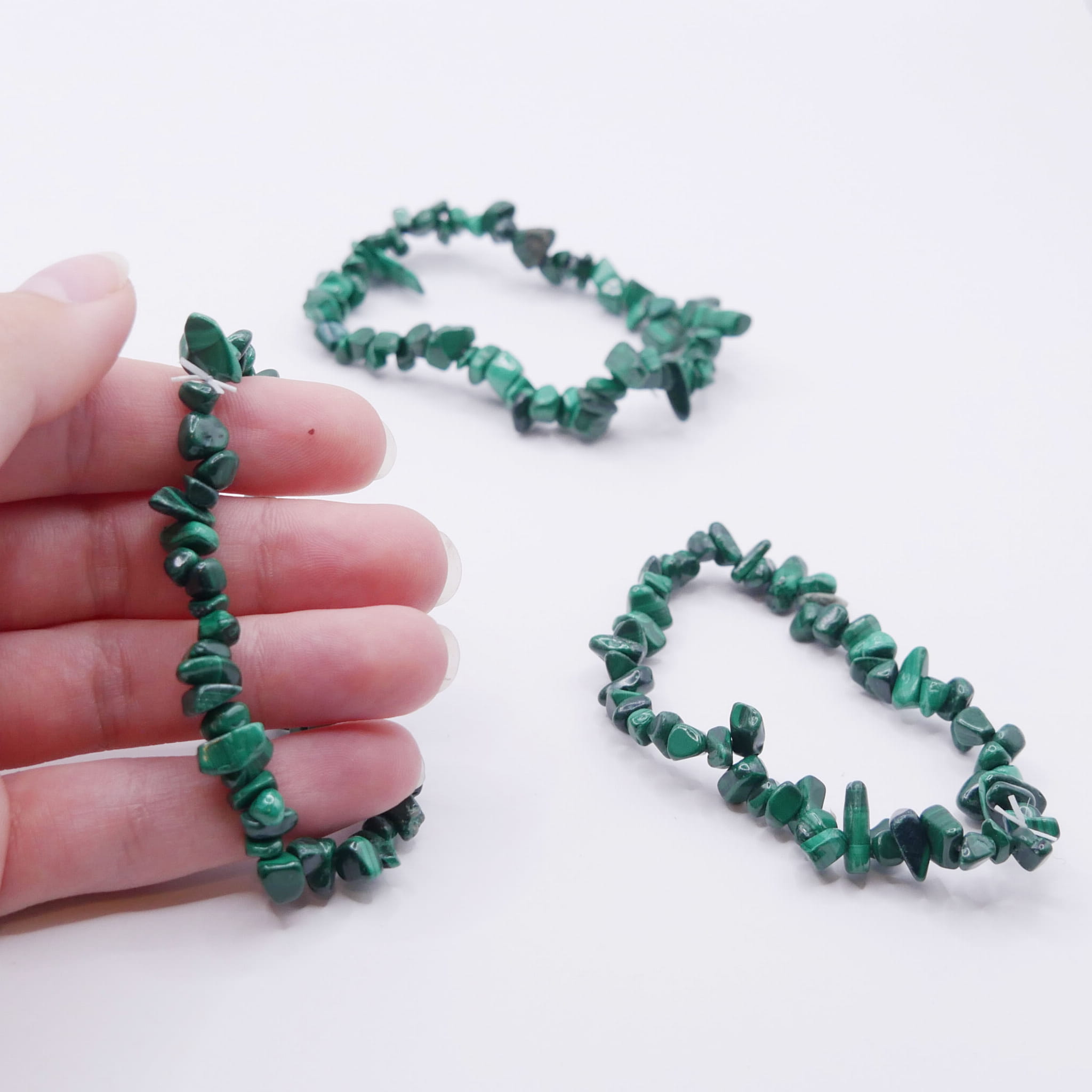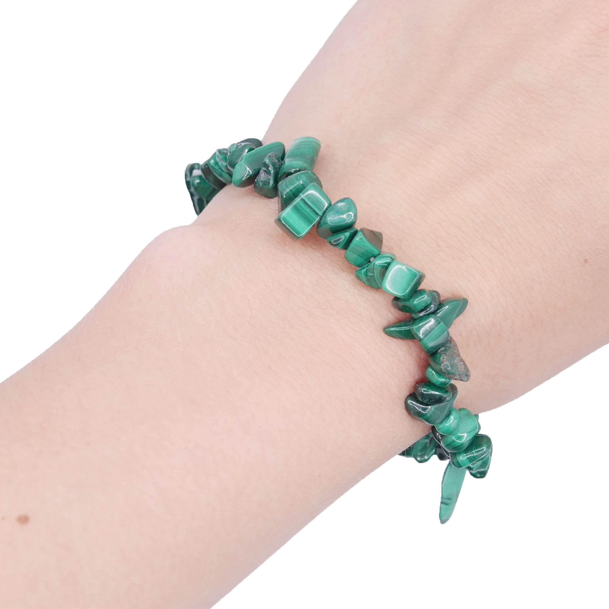 Bransoletka z malachitu (sieczka) na gumce (ok. 18 cm)