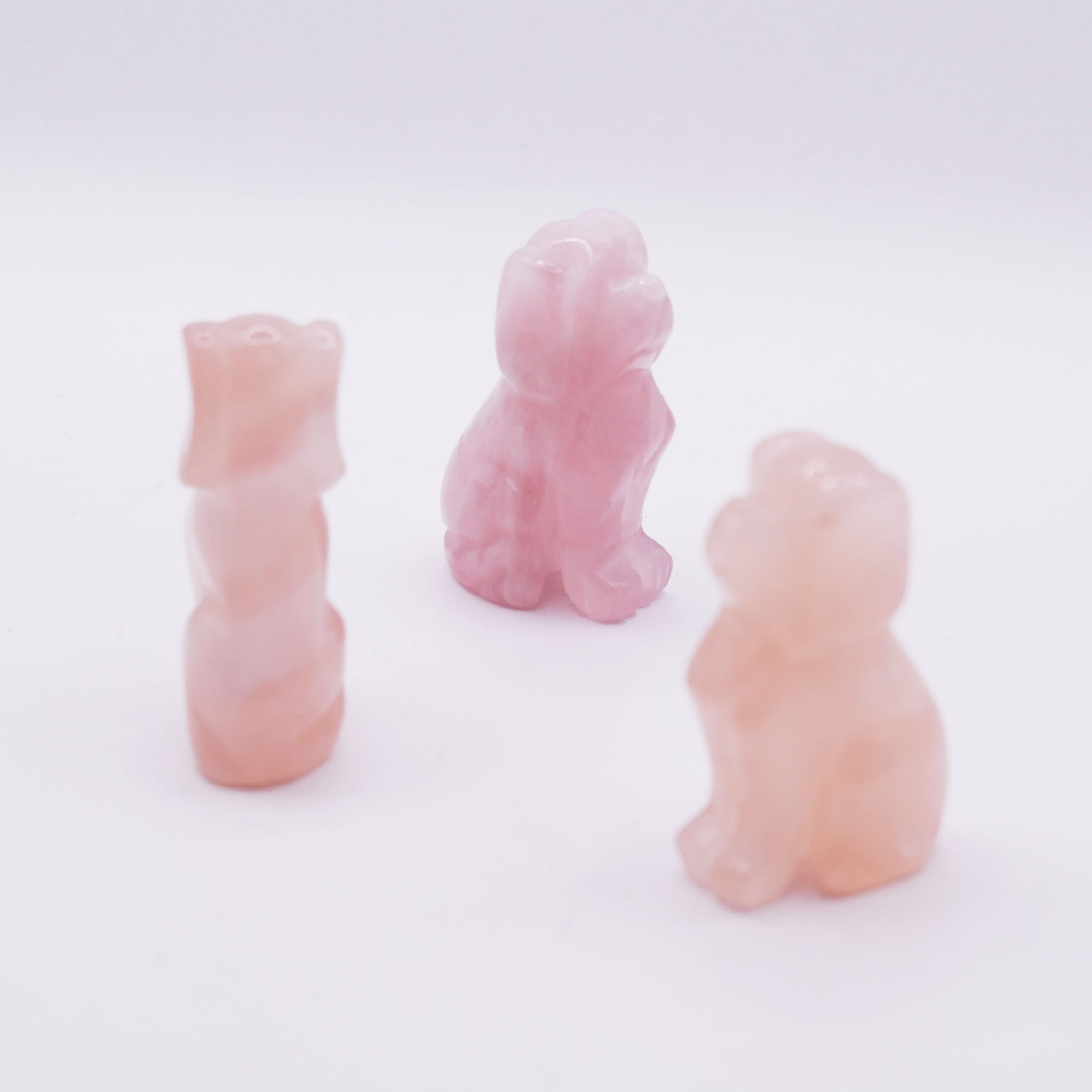 Figurka psa z naturalnego kwarcu różowego (ok. 50 mm)