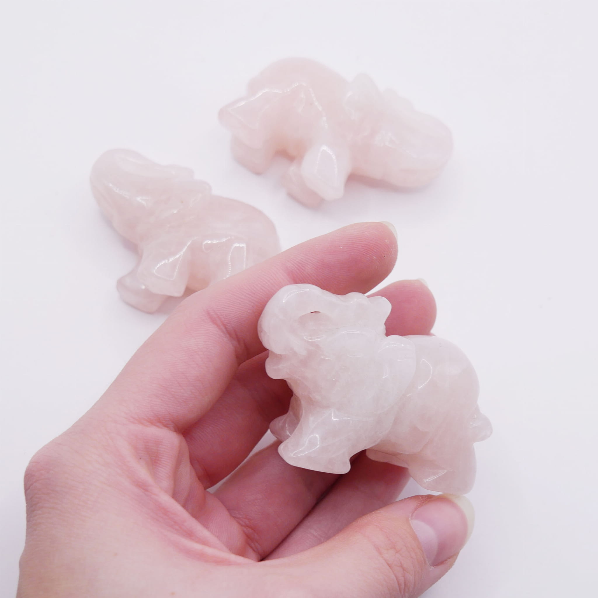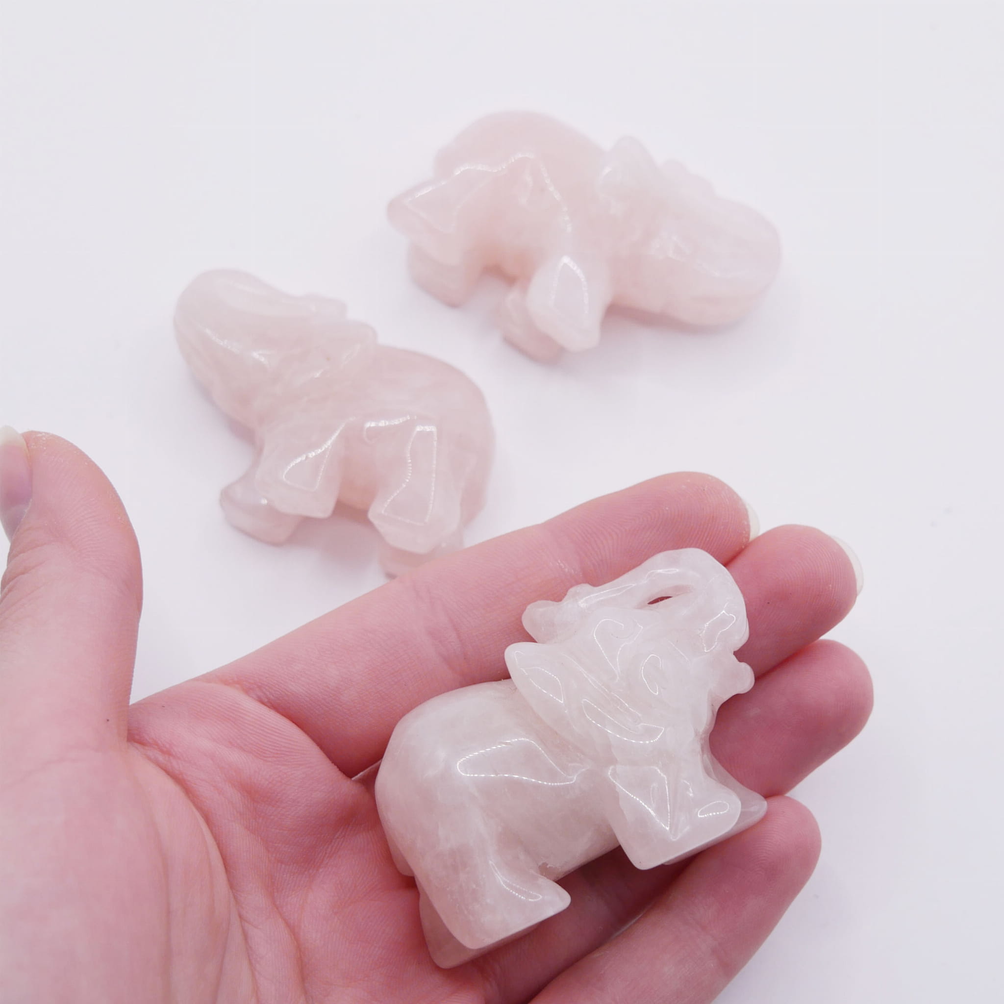 Opis figurki słonia z kwarcu różowego (ok. 50 mm)