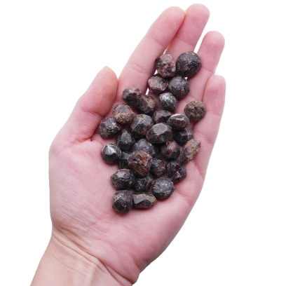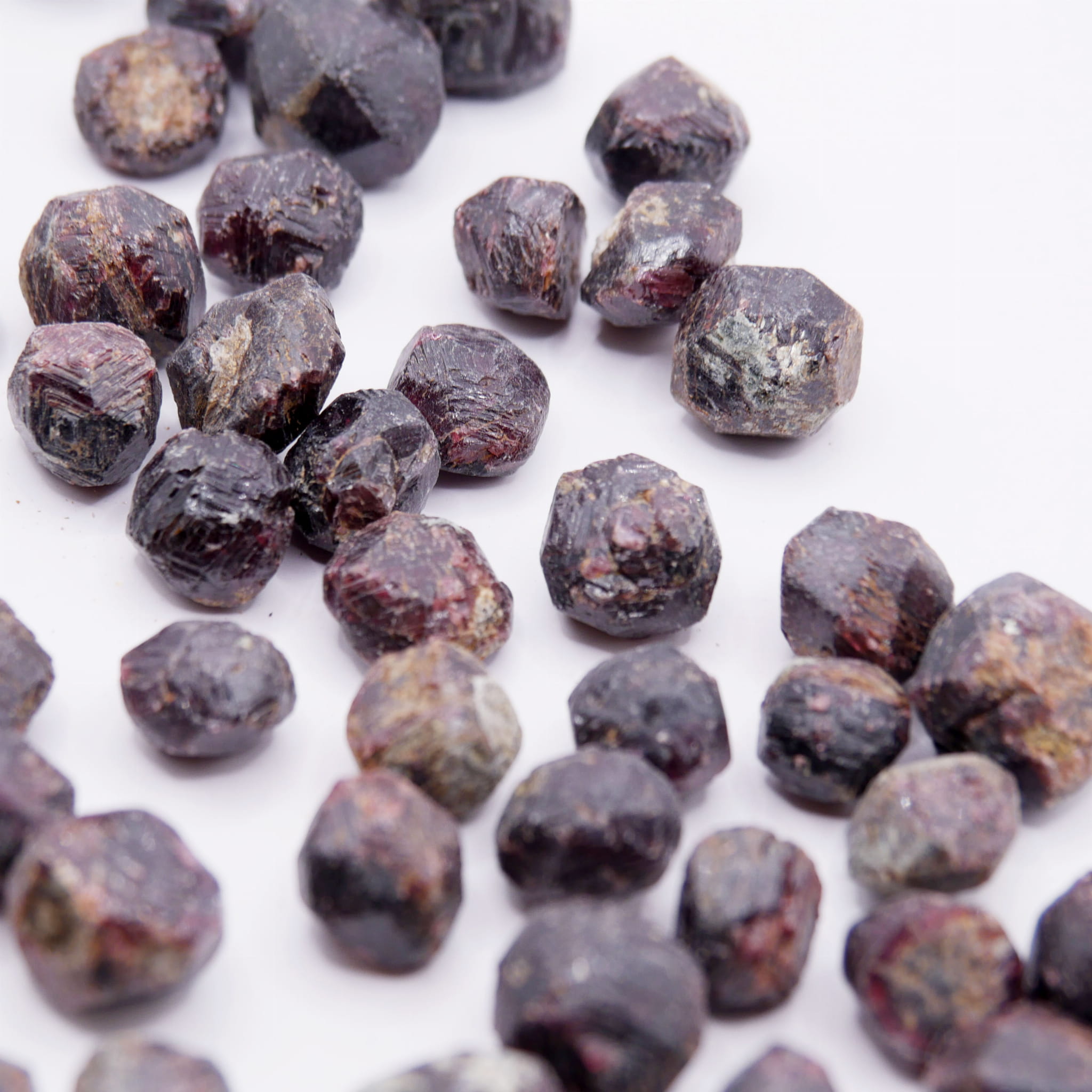 Oferujemy naturalne, surowe bryłki granatu o przybliżonym rozmiarze w przedziale 10-15 mm. Każdy kamień zachowuje swoją pierwotną, nieobrobioną formę, prezentując charakterystyczną, głęboką barwę w odcieniach od ciemnej czerwieni, przez bordo, aż po brąz. Powierzchnia kamieni jest nieregularna, często szklista lub matowa, ukazująca naturalną strukturę minerału. Ze względu na swoje pochodzenie, każda bryłka jest unikatowa pod względem kształtu i nasycenia koloru.