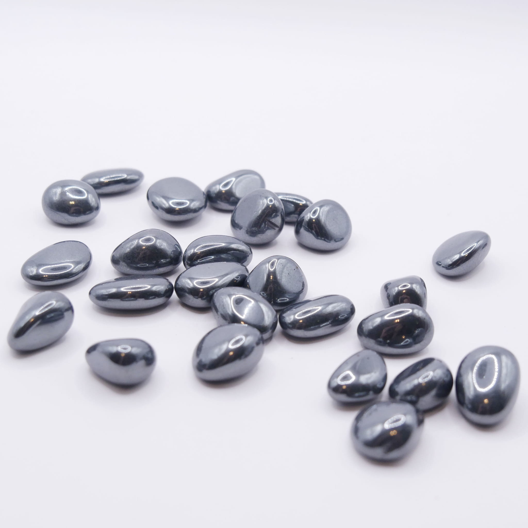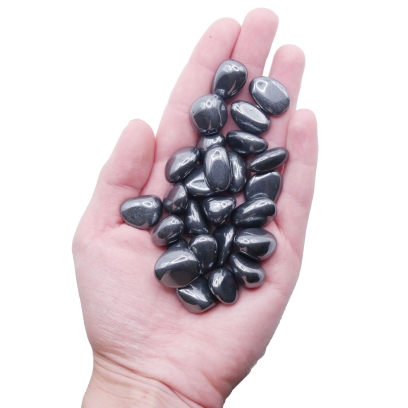Oferujemy małe, polerowane otoczaki naturalnego hematytu, w rozmiarze od 15 do 20 mm. Kamienie te, o gładkim, zaokrąglonym kształcie uzyskanym w procesie bębnowania, charakteryzują się intensywną, ciemną, grafitowo-czarną barwą oraz charakterystycznym, metalicznym połyskiem. Ze względu na proces obróbki i naturalne pochodzenie, każdy otoczak jest unikatowy pod względem dokładnego kształtu i rozmiaru w podanym zakresie.