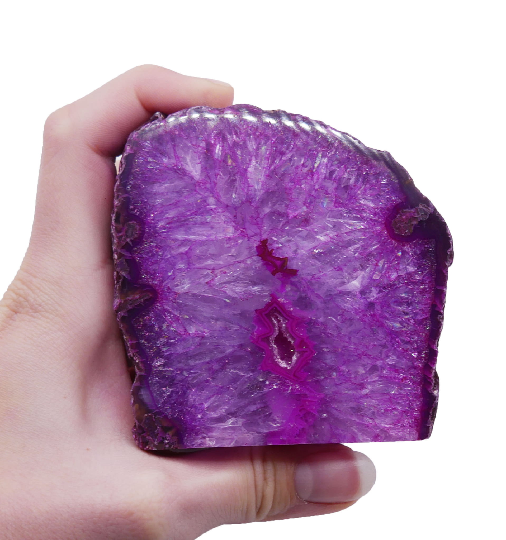 Ten unikatowy egzemplarz agatu, oznaczony numerem 057, to naturalna bryłka o delikatnym, różowym zabarwieniu. Posiada jedną, płasko ściętą i starannie wypolerowaną powierzchnię, która odsłania wewnętrzny świat kamienia z jego unikalnymi wzorami i pasmowaniami. Płasko ścięta podstawa zapewnia stabilność, a pozostałe powierzchnie zachowują surową, nieobrobioną fakturę. Jako egzemplarz nr 057, posiada niepowtarzalne, indywidualne cechy.