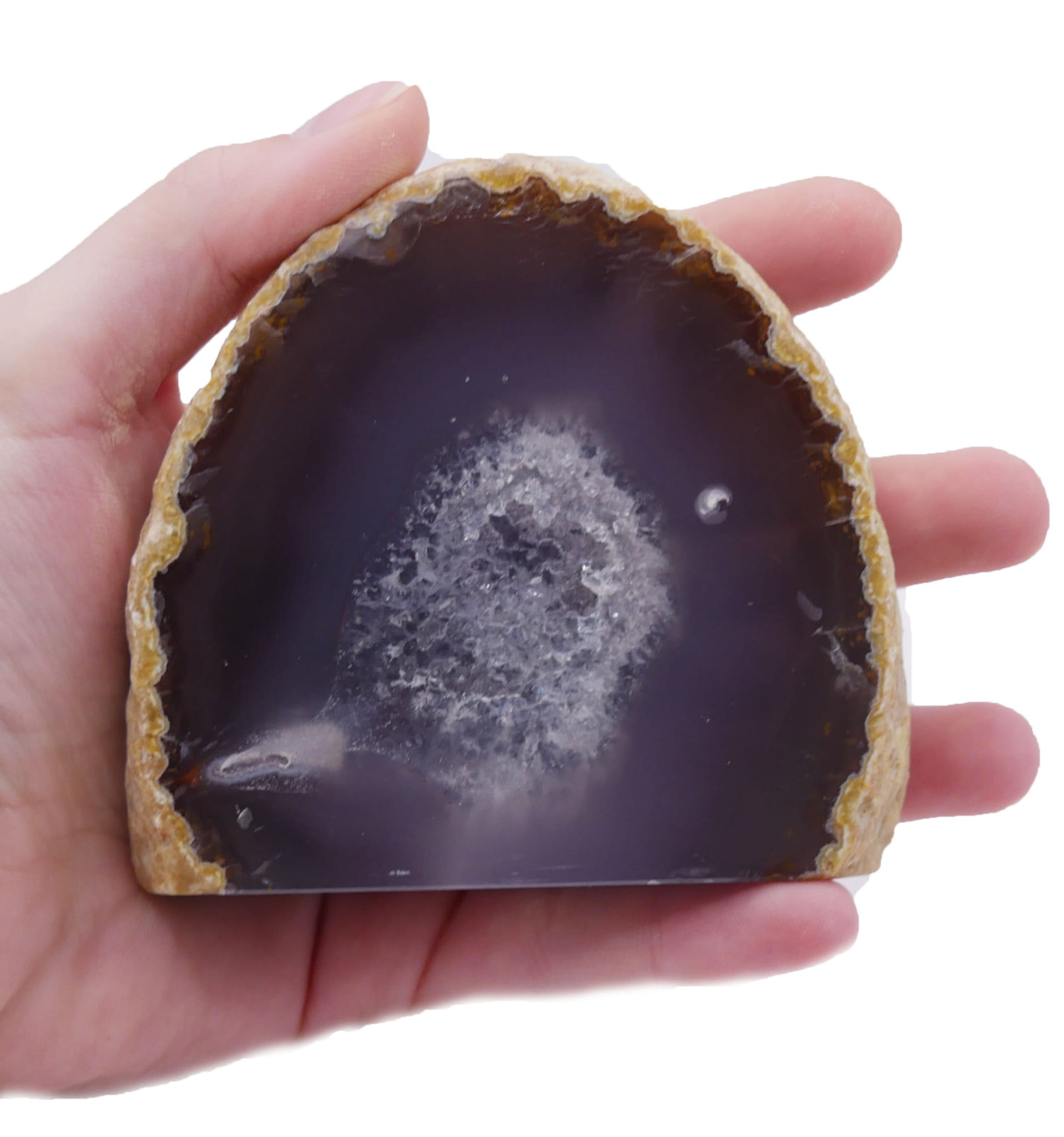 Agat nr 052 jest wyjątkowym obiektem kolekcjonerskim o stonowanej kolorystyce. Kontrast między gładką, polerowaną powierzchnią a surowymi bokami podkreśla jego naturalne pochodzenie. Dzięki stabilnej podstawie, jest to gotowy do ekspozycji element dekoracyjny, który wniesie do wnętrza spokój i wyrafinowaną elegancję.