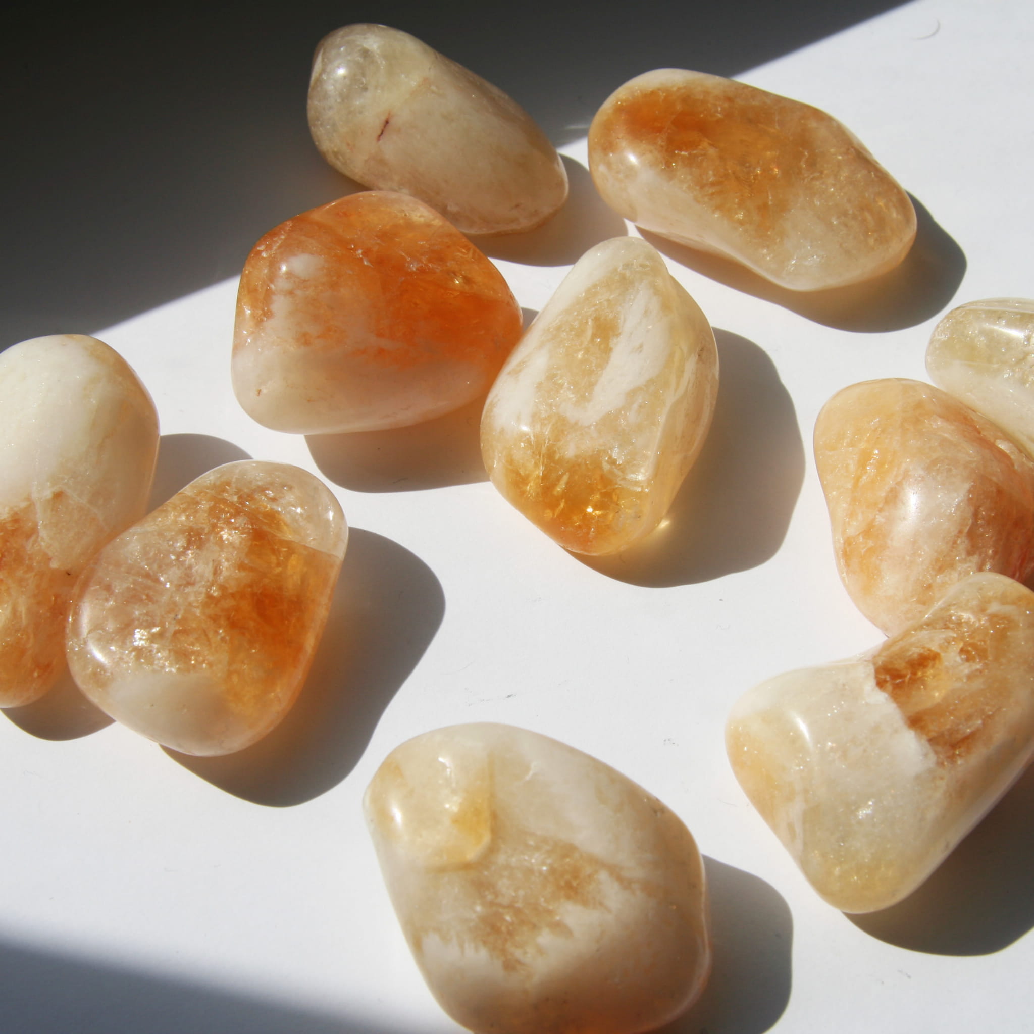 Oferujemy duże, polerowane otoczaki (bębnówki) naturalnego cytrynu, o rozmiarze w przedziale 45-55 mm. Te okazałe kamienie, o gładkim, zaokrąglonym kształcie uzyskanym w procesie bębnowania, charakteryzują się ciepłym, słonecznym zabarwieniem – od jasnożółtych, przez złociste, po delikatnie brązowe odcienie. Ze względu na znaczny rozmiar, w kamieniach mogą być widoczne naturalne cechy, takie jak różnice w klarowności, wewnętrzne inkluzje czy subtelne wzory. Każdy duży otoczak jest unikatowy pod względem dokładnego kształtu, odcienia i wewnętrznej charakterystyki.