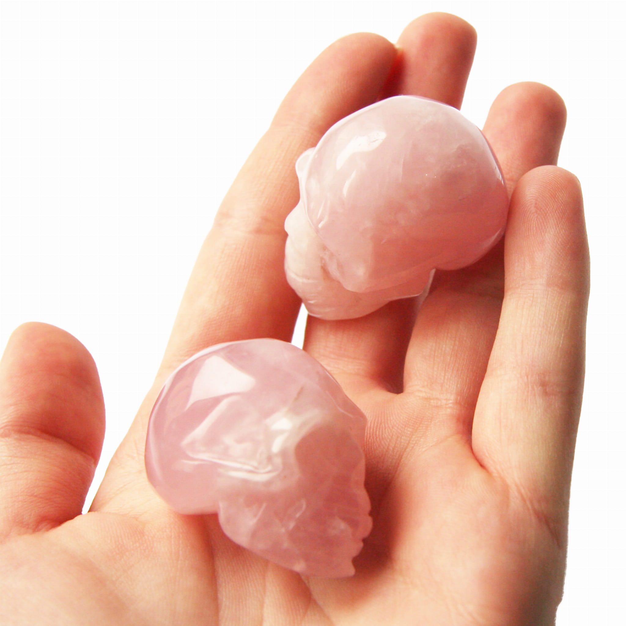Oferujemy figurki w kształcie czaszki, które zostały ręcznie wyrzeźbione z naturalnego kwarcu różowego. Każda czaszka mierzy około 40 mm i charakteryzuje się starannie wypolerowaną powierzchnią, eksponującą delikatne, różowe zabarwienie oraz subtelną, często mleczną przejrzystość tego kamienia. Ze względu na naturalną zmienność kwarcu różowego pod względem odcienia i wewnętrznej struktury, a także indywidualny charakter ręcznego rzeźbienia, każda figurka jest unikatowym egzemplarzem.