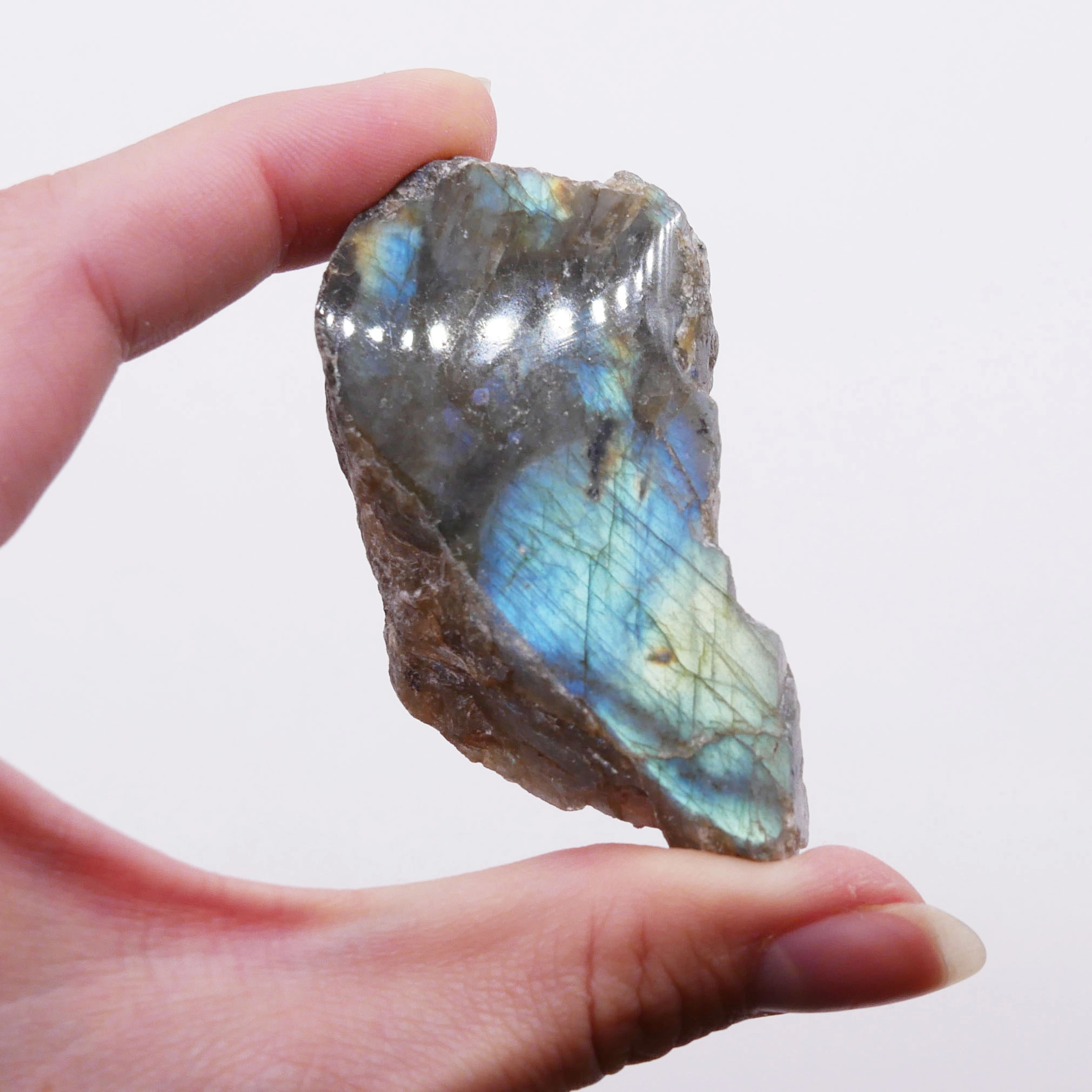 Okaz labradorytu nr 065 jest niepowtarzalnym obiektem kolekcjonerskim. Kontrast między surową teksturą a gładką, lśniącą powierzchnią pozwala w pełni docenić jego piękno. Jest to jedyny w swoim rodzaju fragment skały, idealny do ekspozycji jako oryginalna, naturalna ozdoba, która fascynuje swoją ukrytą grą kolorów i autentycznością.