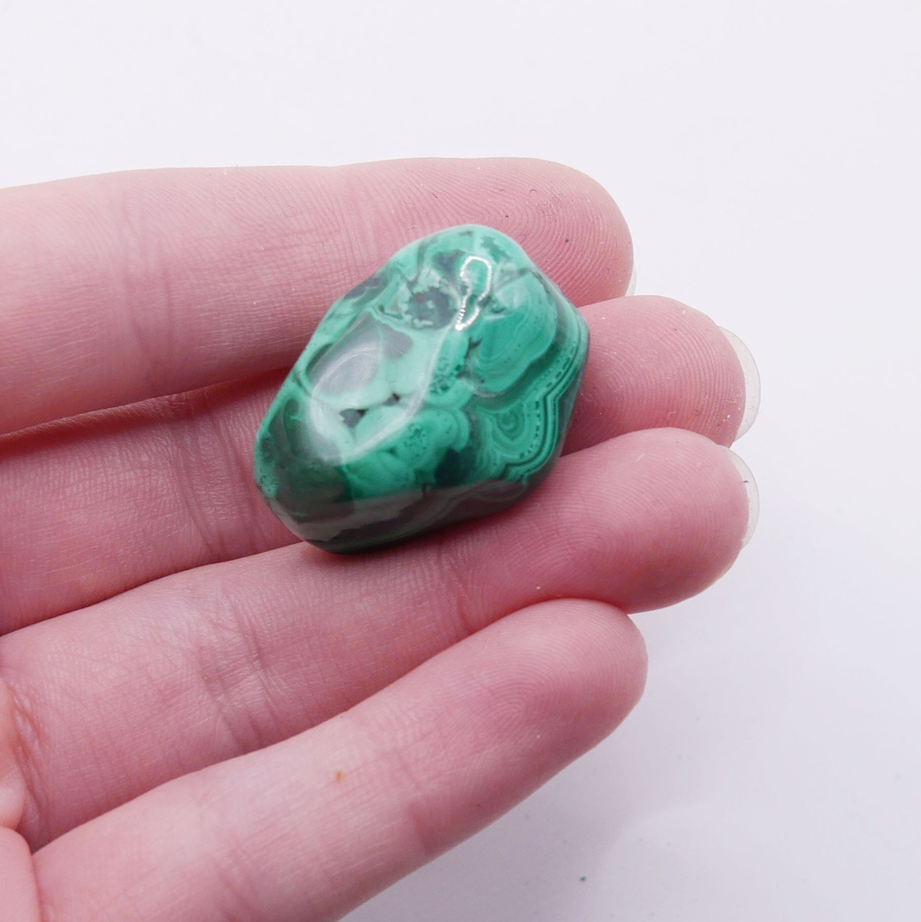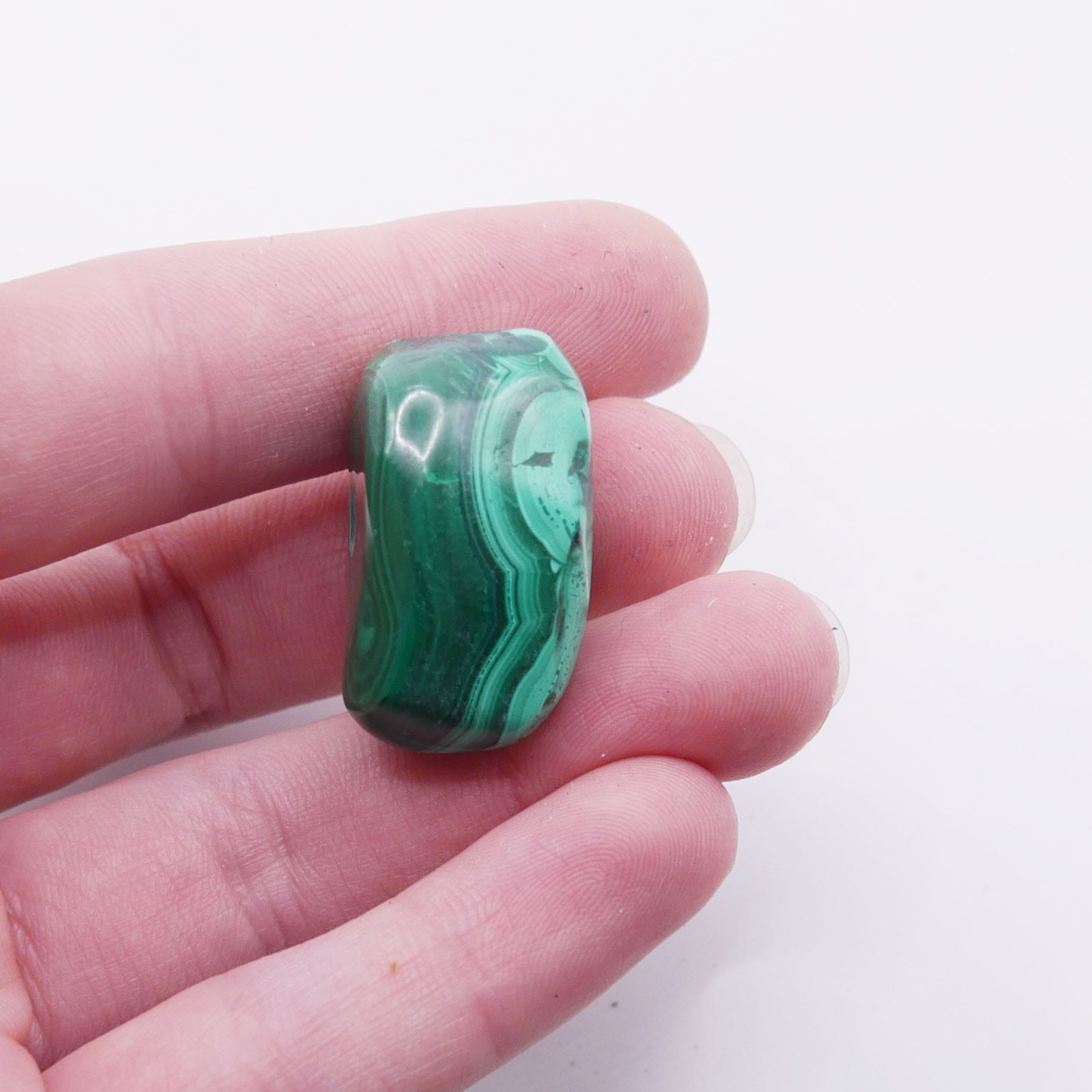 Prezentowany egzemplarz oznaczony numerem 027 to naturalny kamień, który dzięki procesowi bębnowania zyskał idealną gładkość i zaokrąglone krawędzie. Jego powierzchnia to fascynująca gra zieleni – od subtelnych, pastelowych smug po intensywne, butelkowe tony. Precyzyjny szlif wydobywa unikalny układ warstw i naturalnych zdobień, który jest charakterystyczny wyłącznie dla tego okazu, czyniąc go niepowtarzalnym.