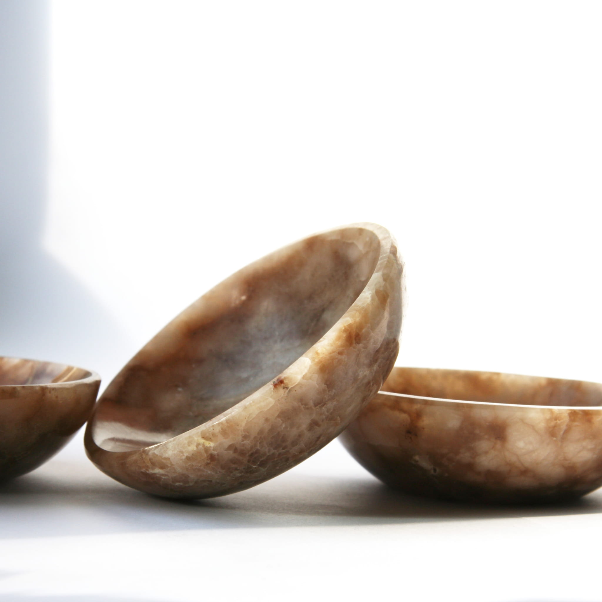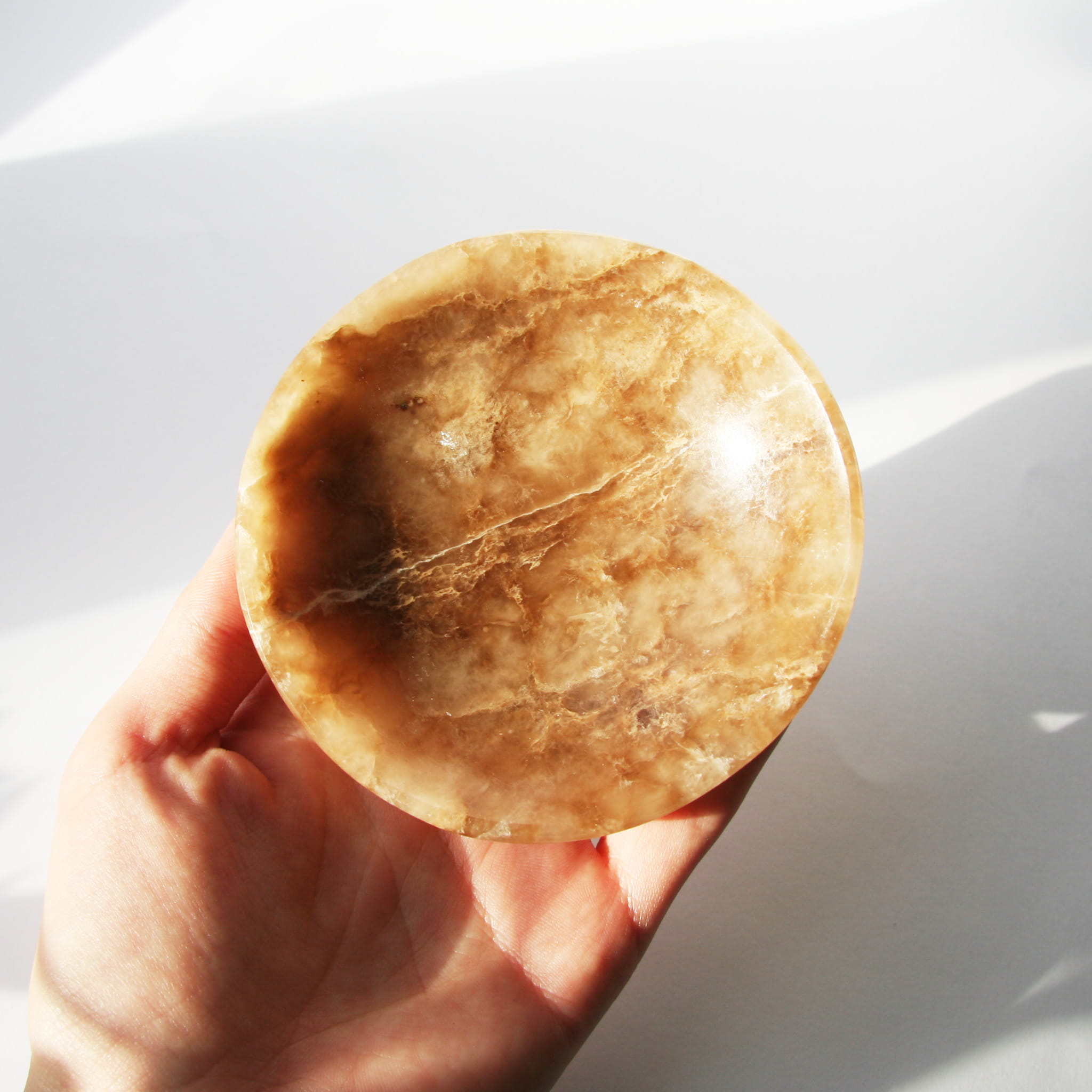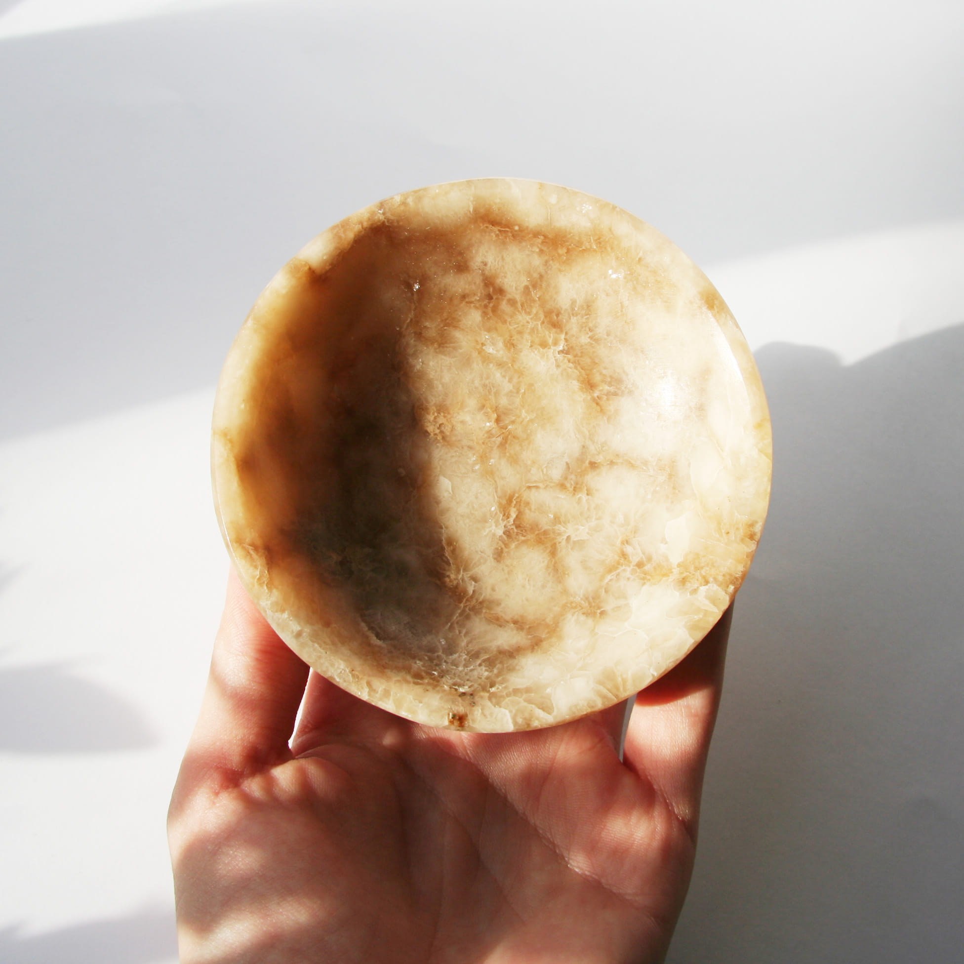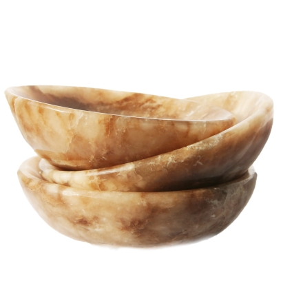 Oferujemy unikalne miski wykonane ręcznie z naturalnego aragonitu. Każda miska charakteryzuje się gładką, starannie wypolerowaną powierzchnią, która pięknie eksponuje naturalne piękno tego minerału. Aragonit w tej formie często prezentuje charakterystyczne, ciepłe odcienie (beże, brązy, kremy) oraz atrakcyjną, pasmowaną i warstwową strukturę. Ze względu na naturalną zmienność kamienia, każda miska posiada niepowtarzalny wzór i układ kolorystyczny, co czyni ją jedyną w swoim rodzaju.