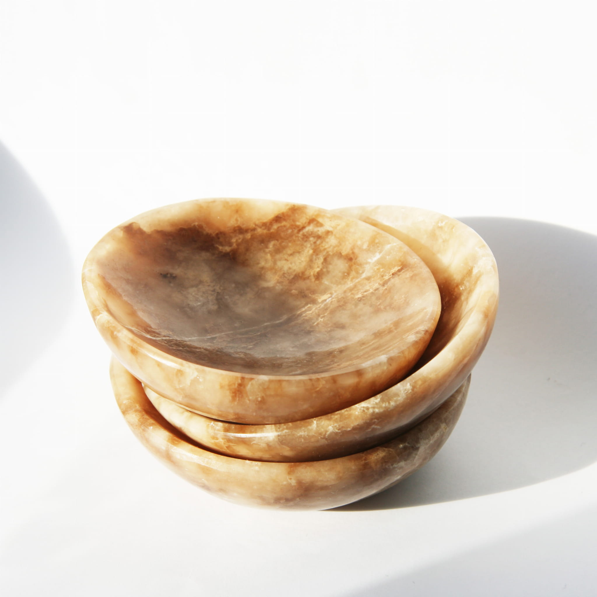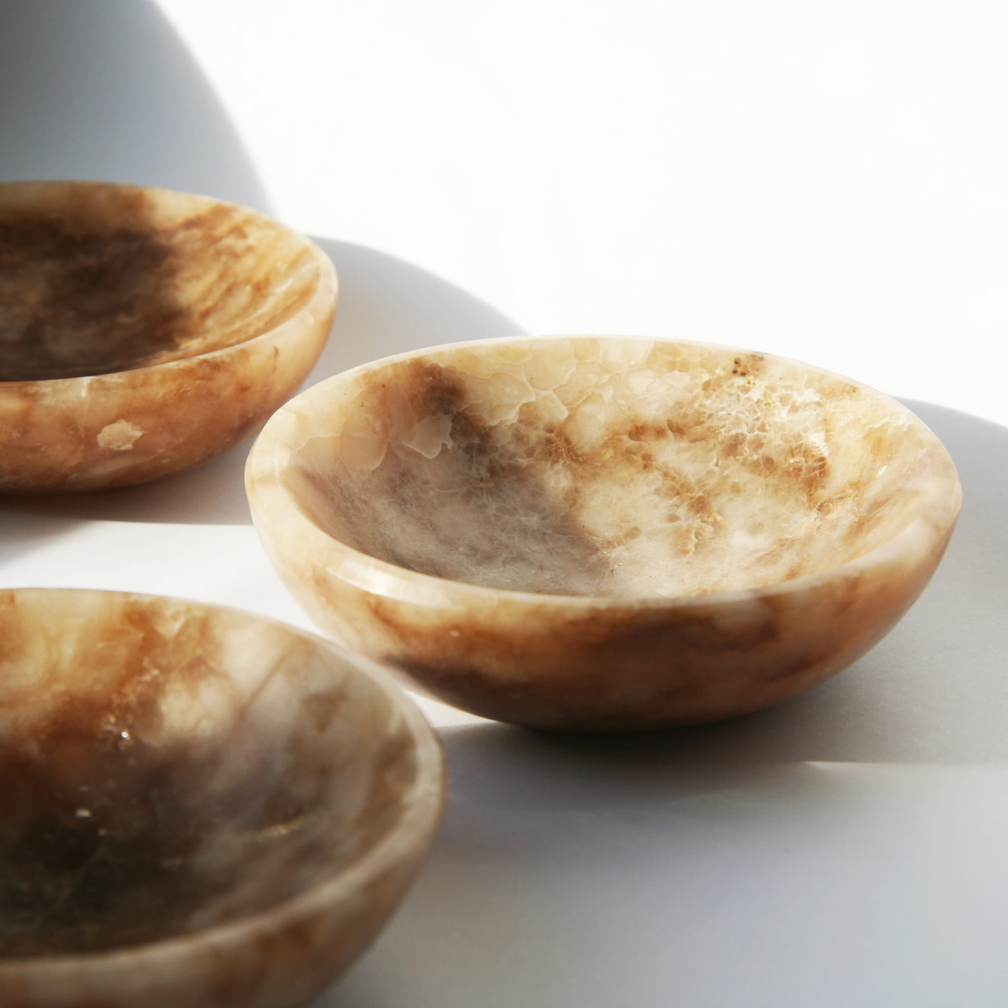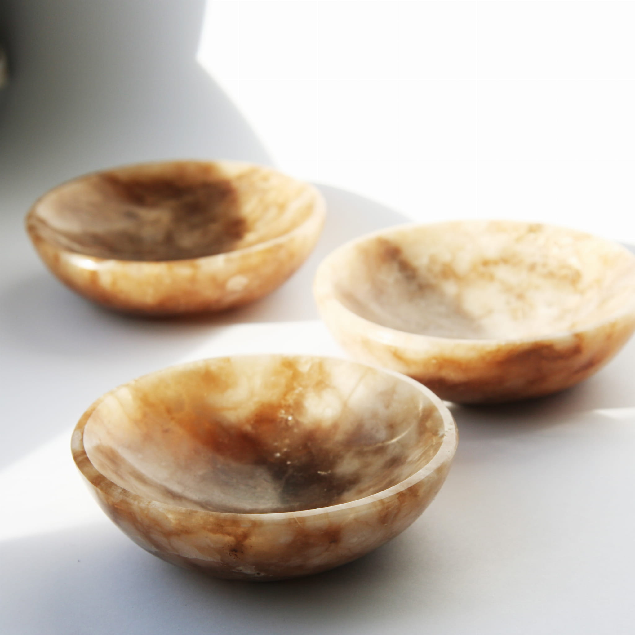 Oferujemy unikalne miski wykonane ręcznie z naturalnego aragonitu. Każda miska charakteryzuje się gładką, starannie wypolerowaną powierzchnią, która pięknie eksponuje naturalne piękno tego minerału. Aragonit w tej formie często prezentuje charakterystyczne, ciepłe odcienie (beże, brązy, kremy) oraz atrakcyjną, pasmowaną i warstwową strukturę. Ze względu na naturalną zmienność kamienia, każda miska posiada niepowtarzalny wzór i układ kolorystyczny, co czyni ją jedyną w swoim rodzaju.