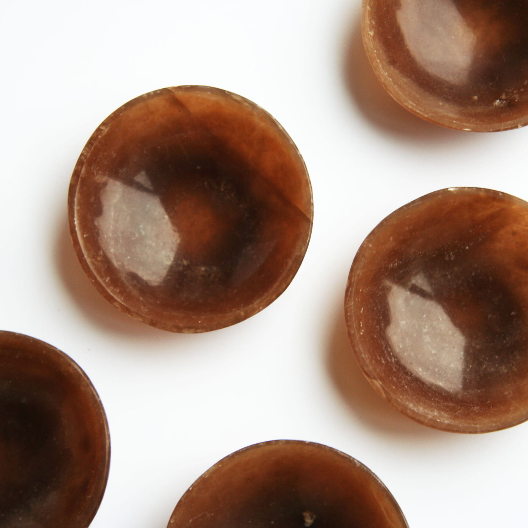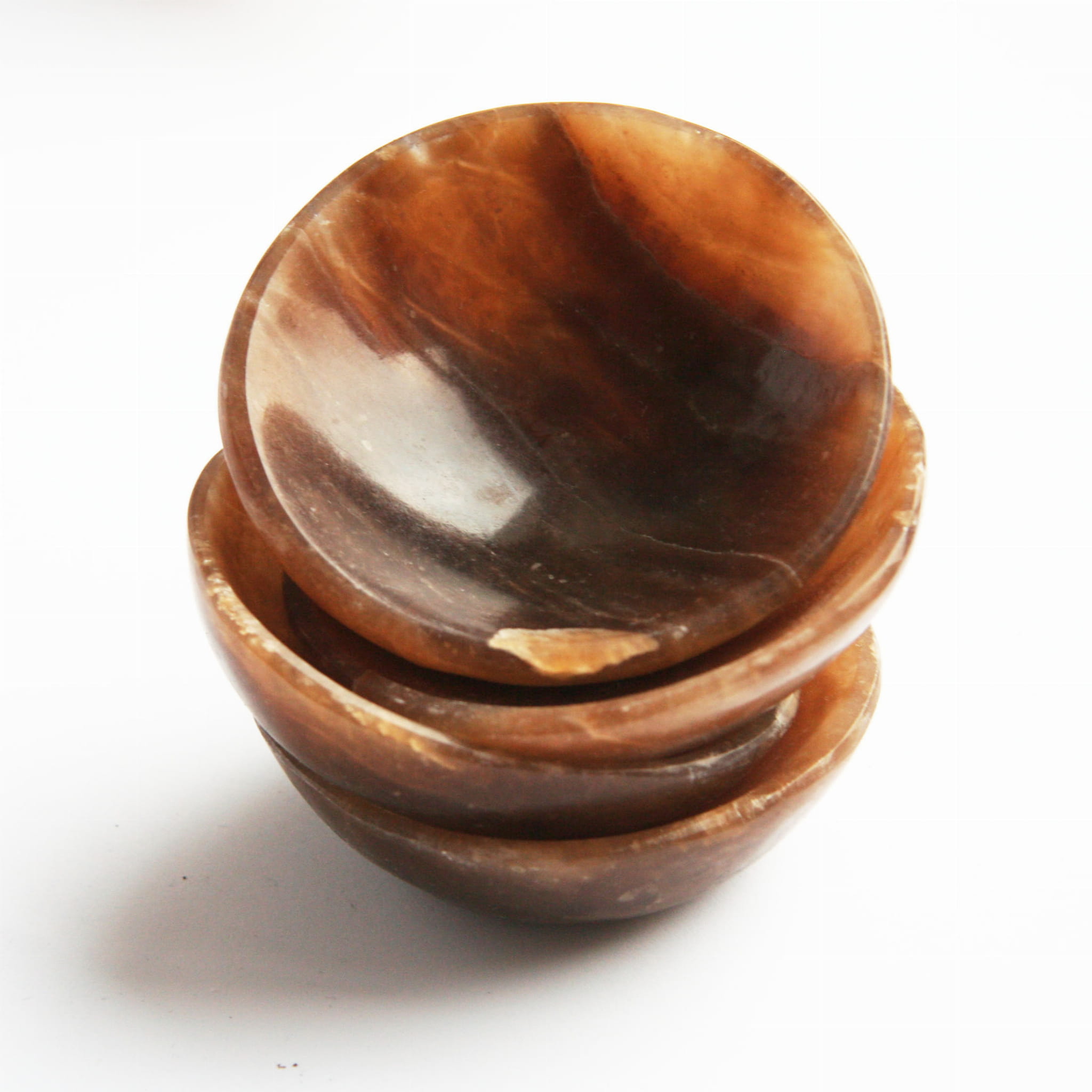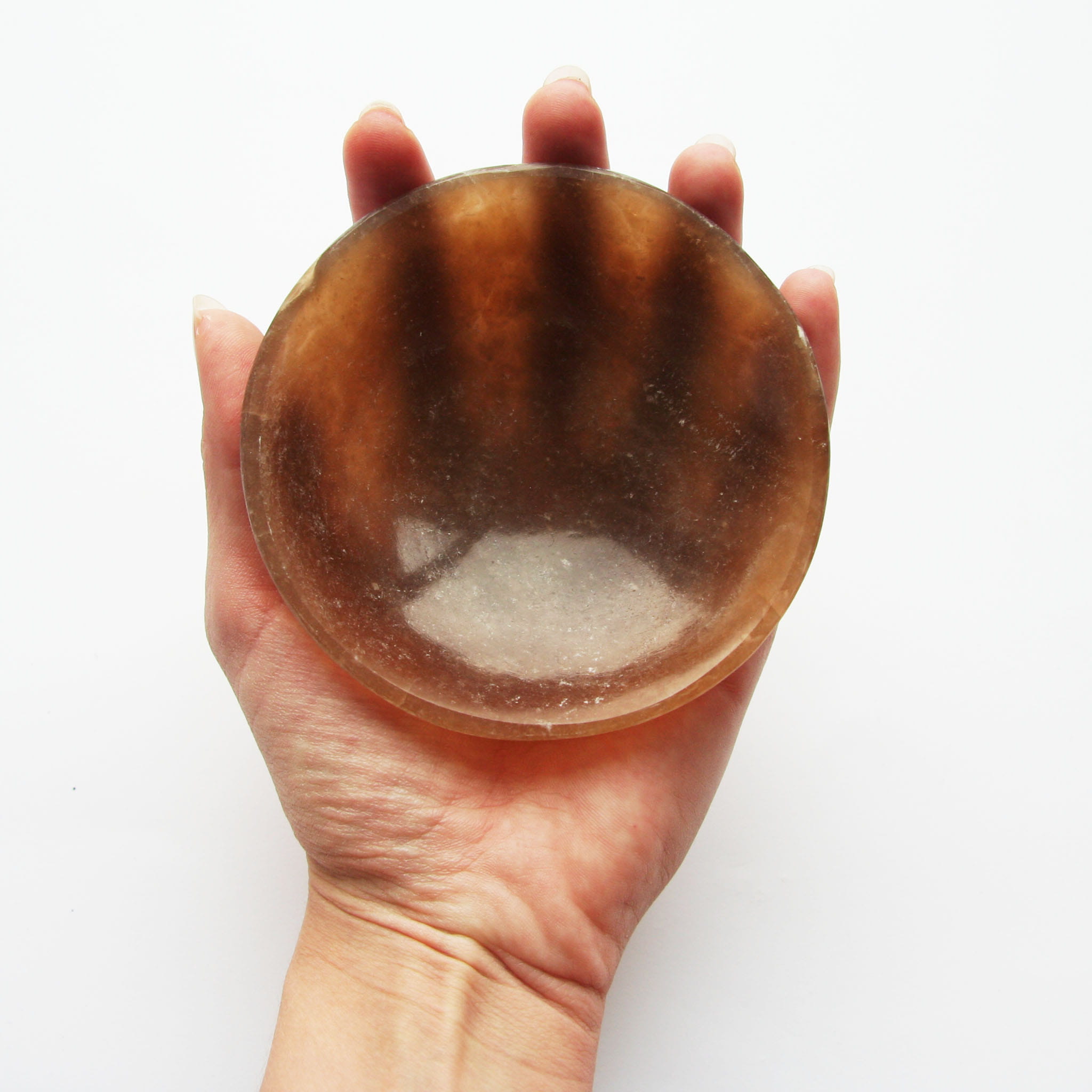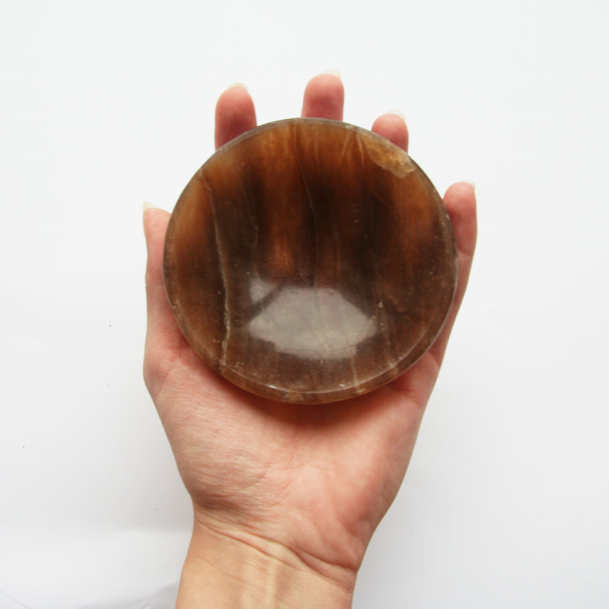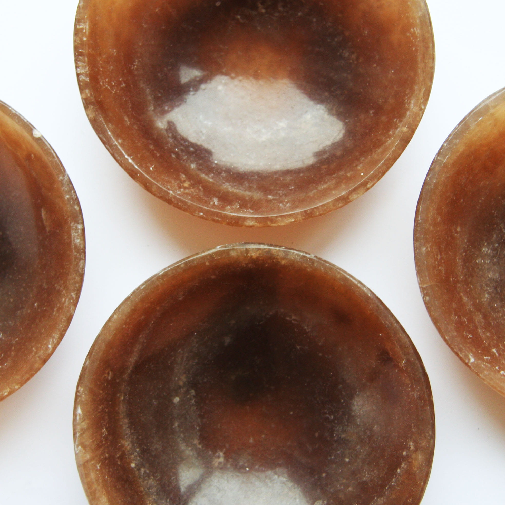 Oferujemy ręcznie wykonane miseczki z naturalnego aragonitu. Każda sztuka posiada funkcjonalną i estetyczną formę miski ze starannie wypolerowanym wnętrzem i zewnętrzną powierzchnią. Aragonit prezentuje w tej formie swoje charakterystyczne odcienie – najczęściej beżowe, kremowe i brązowe – oraz interesującą, często warstwową, pasmowaną strukturę. Ze względu na naturalne pochodzenie materiału i ręczne wykonanie, każda miseczka jest absolutnie unikatowa pod względem wzoru, układu barw i dokładnego kształtu.