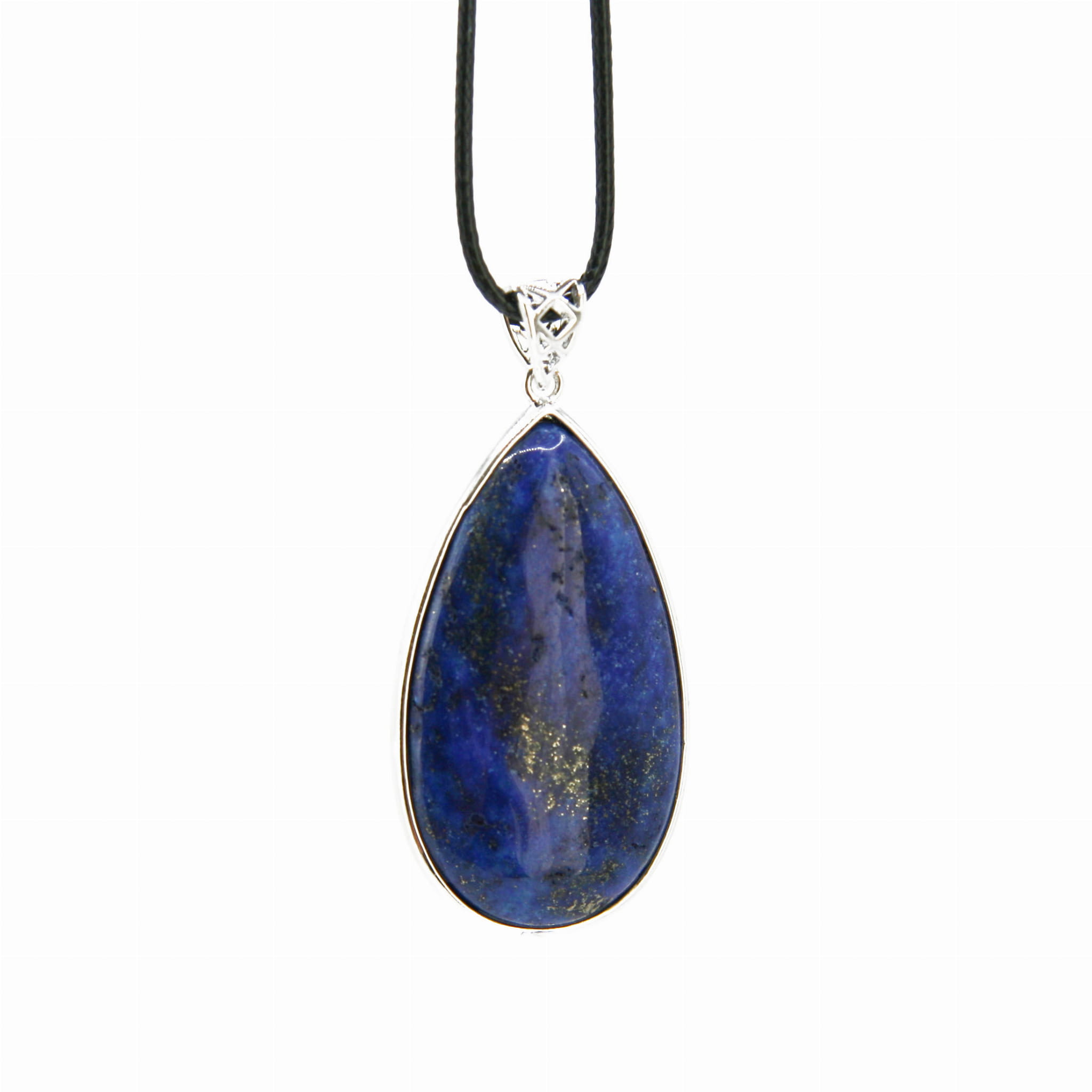 Ten naszyjnik z lapis lazuli łączy ponadczasową elegancję kształtu łezki z królewskim pięknem tego historycznego kamienia. Głęboki błękit przeplatany złotymi i białymi akcentami tworzy niepowtarzalną kompozycję. Jest to wyjątkowy dodatek biżuteryjny, który doda klasy każdej stylizacji, a także może służyć jako amulet wspierający mądrość i prawdę. Doskonały na prezent dla miłośnika kamieni naturalnych.