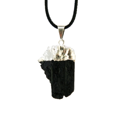 Oferujemy wisiorek w postaci surowej bryłki naturalnego czarnego turmalinu (szerlu). Kamień zachowuje swoją pierwotną, nieregularną formę i naturalną fakturę, często z widocznymi śladami struktur krystalicznych lub charakterystycznych podłużnych prążkowań. Prezentuje głęboką, intensywną czarną barwę. Jego górna część została oprawiona w metalowy stop (cynk i miedź) w kolorze srebrnym, tworząc trwałe mocowanie z kółeczkiem do zawieszenia. Wisiorek zawieszony jest na czarnym, woskowanym rzemyku, wyposażonym w praktyczne, regulowane zapięcie ze stali chirurgicznej, które pozwala na dopasowanie długości. Ze względu na naturalny charakter surowych kamieni, każda bryłka turmalinu jest unikatowa pod względem kształtu, rozmiaru i detali powierzchni.