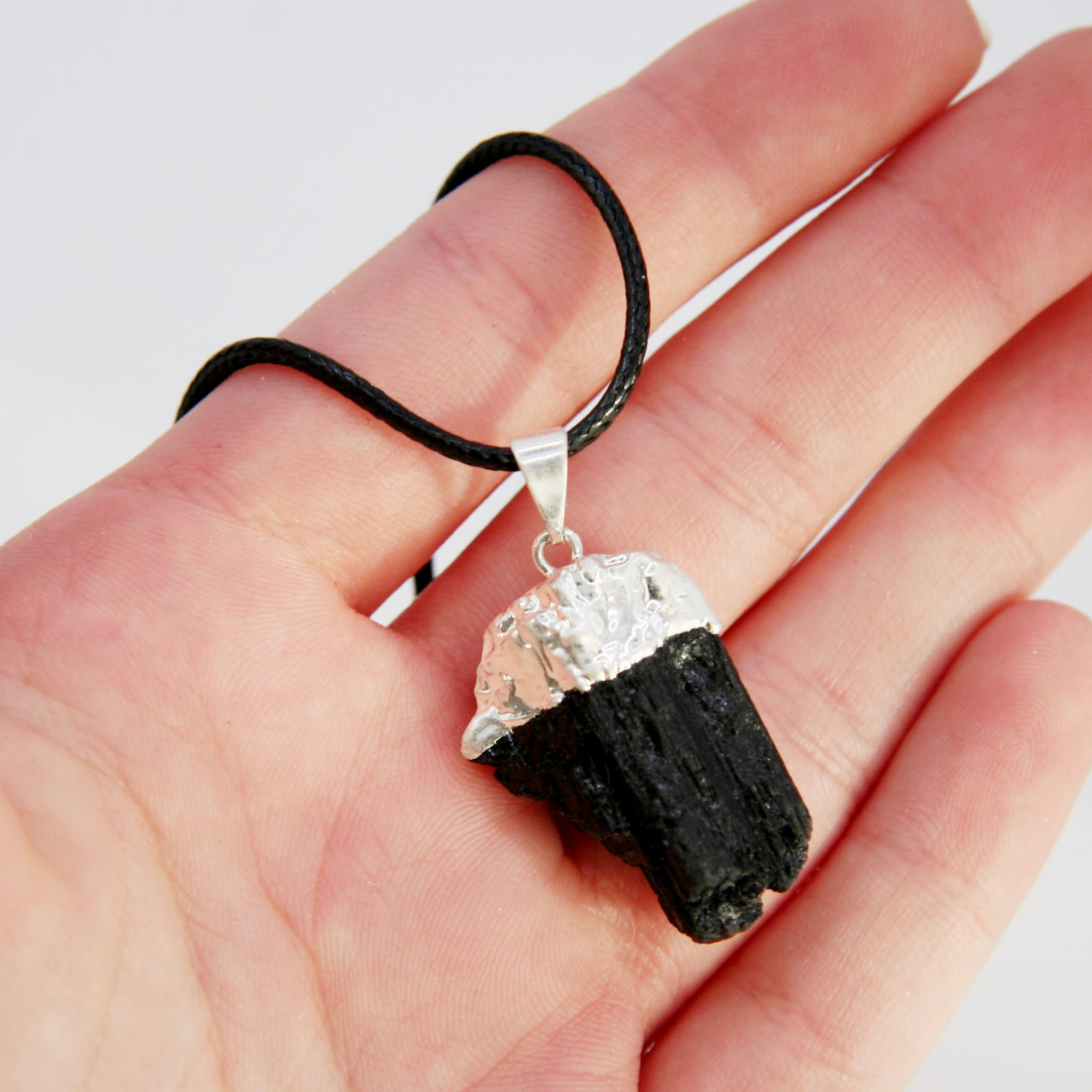 Naszyjnik z naturalnym, surowym czarnym turmalinem
