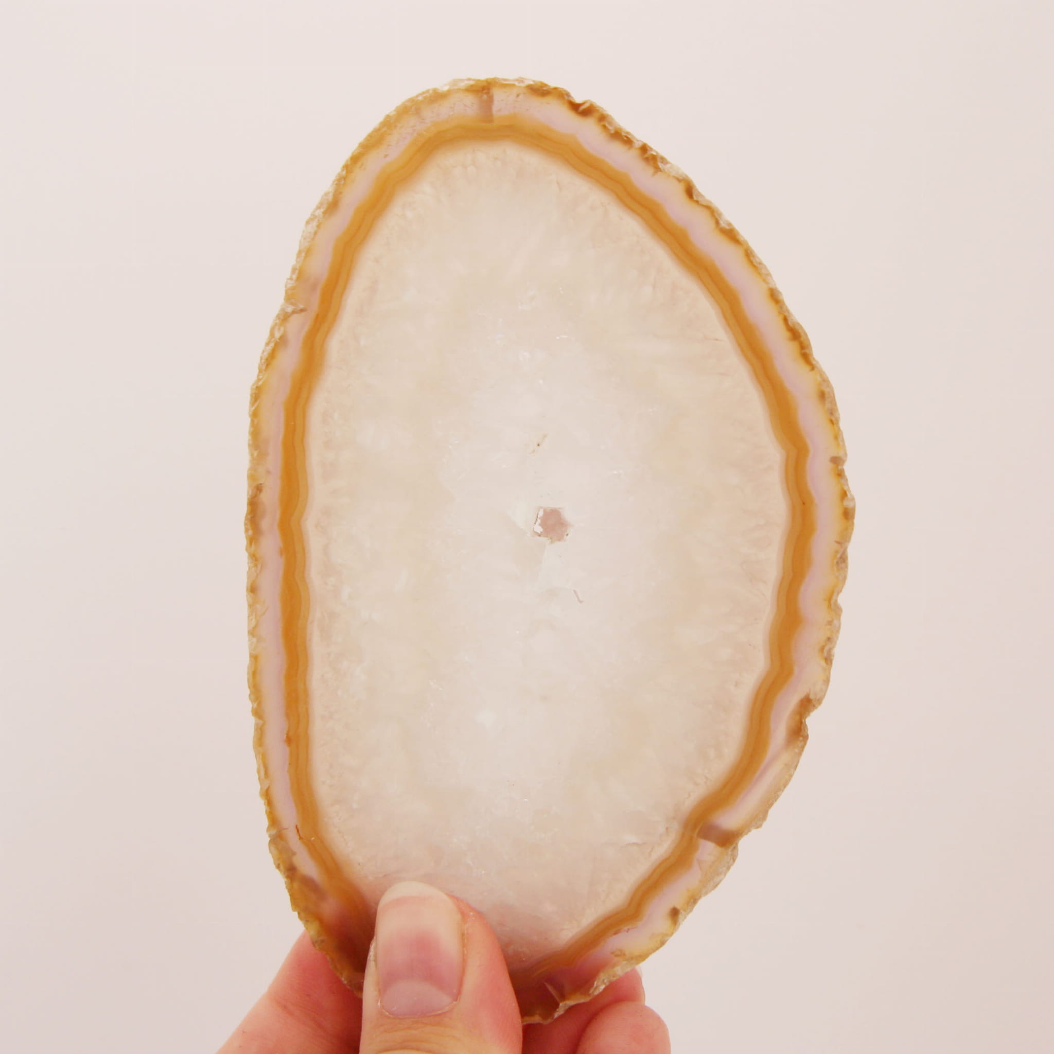 Prezentowany unikatowy plaster agatu, oznaczony numerem 051, urzeka naturalnym, brązowym zabarwieniem w ciepłych odcieniach. Jest to cienki plaster wycięty z agatu, którego obie powierzchnie zostały starannie wypolerowane, nadając im wyjątkową gładkość i subtelny połysk. Polerowanie eksponuje właściwy tylko temu egzemplarzowi (nr 051), fascynujący świat wewnętrznych struktur i pasm w brązowej tonacji przy granicach plastra. Jako egzemplarz nr 051, jest niepowtarzalnym dziełem natury.
