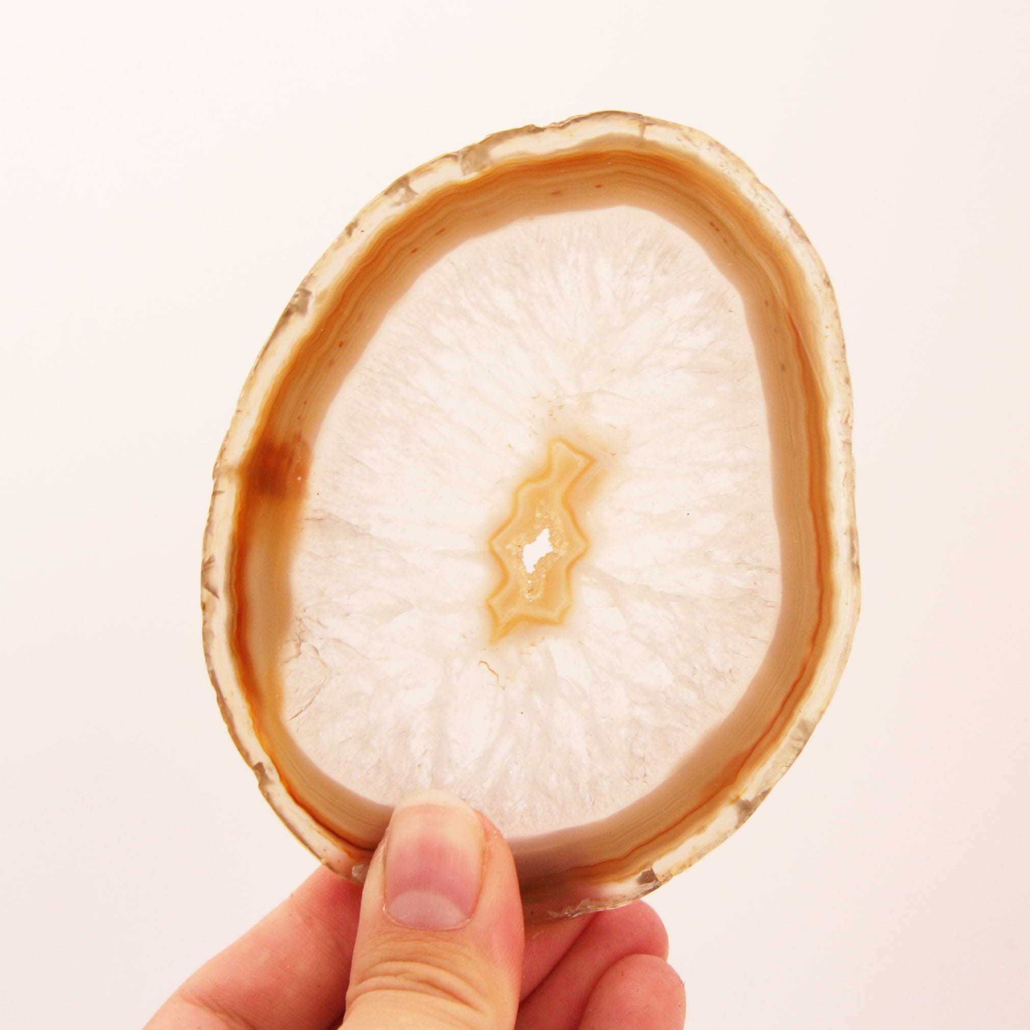 Oferowany plaster agatu, egzemplarz nr 052, to niepowtarzalny okaz naturalnego minerału. Jest to cienki plaster wycięty z agatu, charakteryzujący się ciepłym, brązowym zabarwieniem w różnych, ziemistych odcieniach. Obie jego powierzchnie zostały starannie wypolerowane, nadając im wyjątkową gładkość i subtelny połysk. Polerowanie odsłania charakterystyczny dla tego kamienia indywidualny rysunek wewnętrzny naturalnych pasm i struktur. Jako egzemplarz nr 052, prezentuje unikalną estetykę.