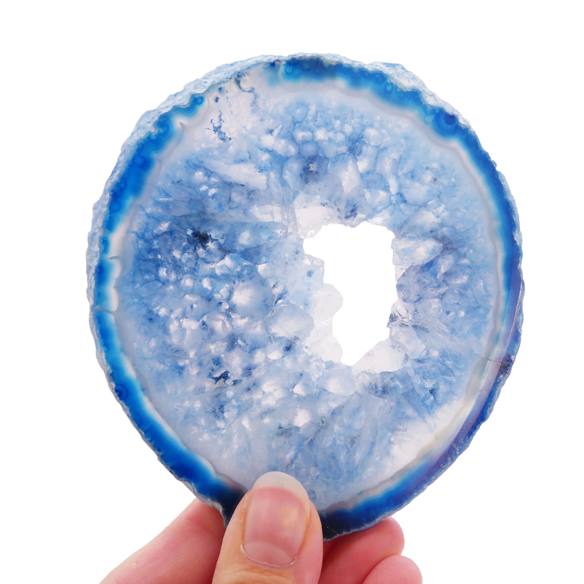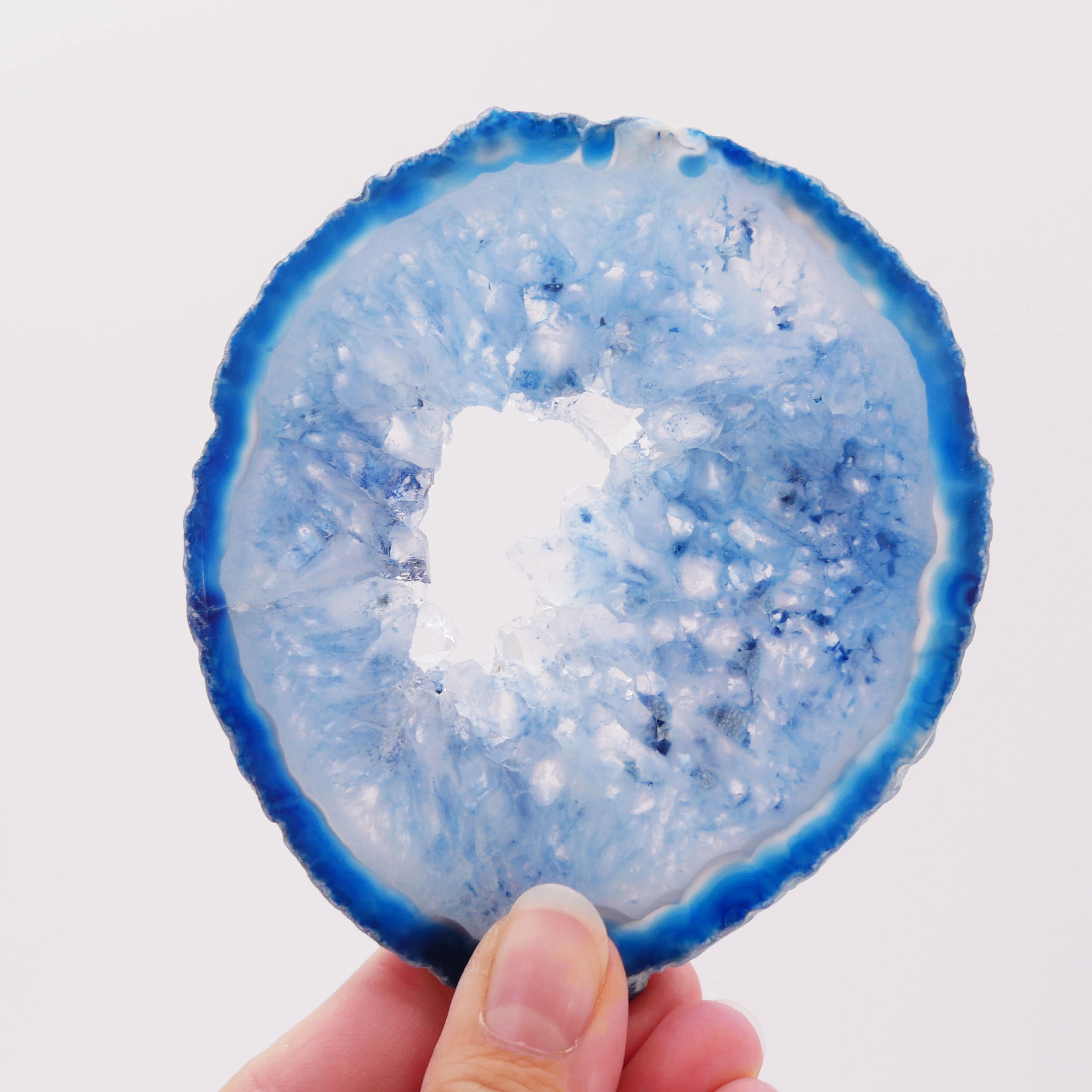 Ten niebieski plaster agatu (nr 045) cechuje się dużą wszechstronnością dekoracyjną. Idealnie nadaje się jako elegancka podstawka pod drobne przedmioty, oryginalny element dekoracyjny (np. w kompozycji na ścianie lub podświetlany), bądź jako cenny okaz kolekcjonerski dla miłośników agatów. Jego unikalny wzór i żywa barwa stanowią przyciągający wzrok akcent.