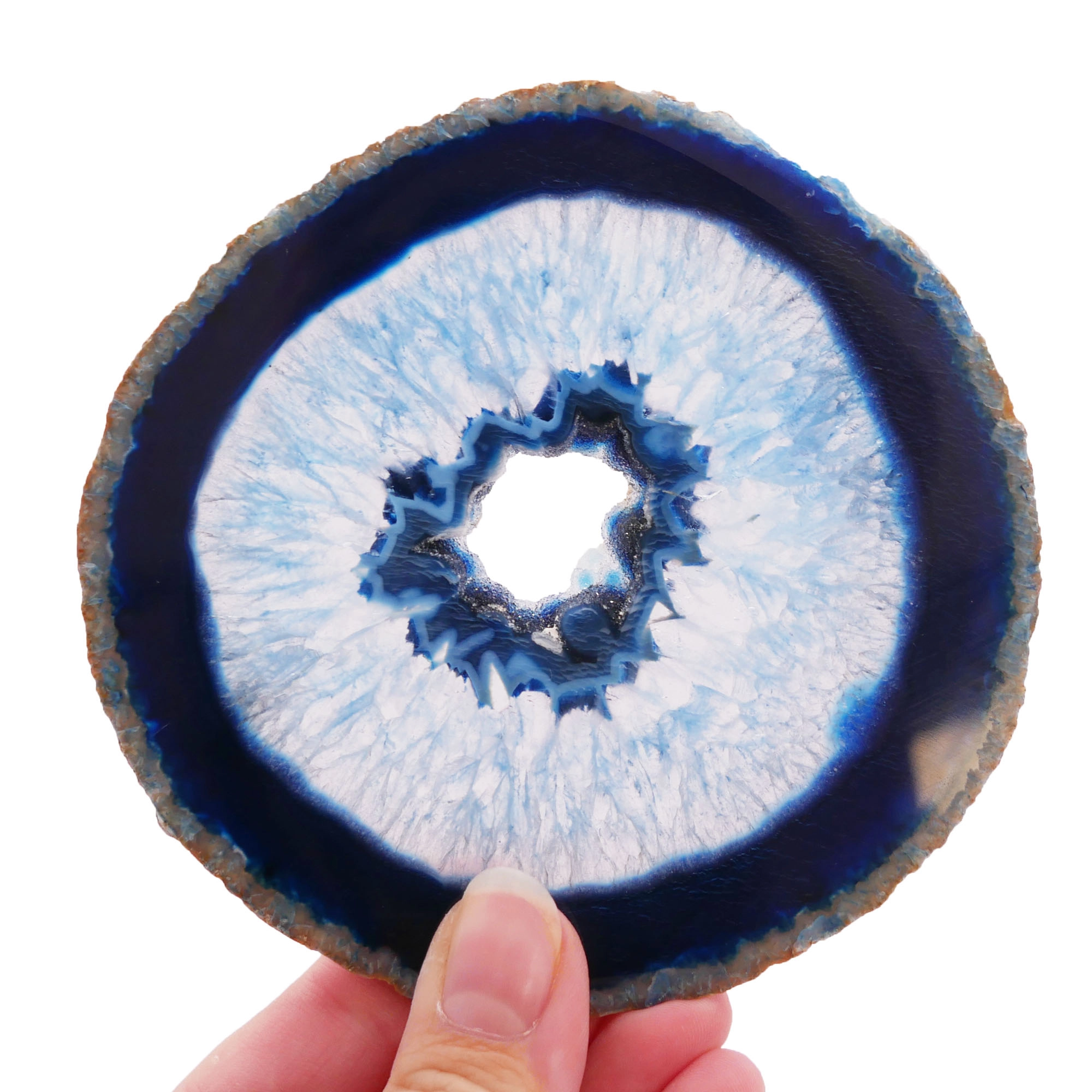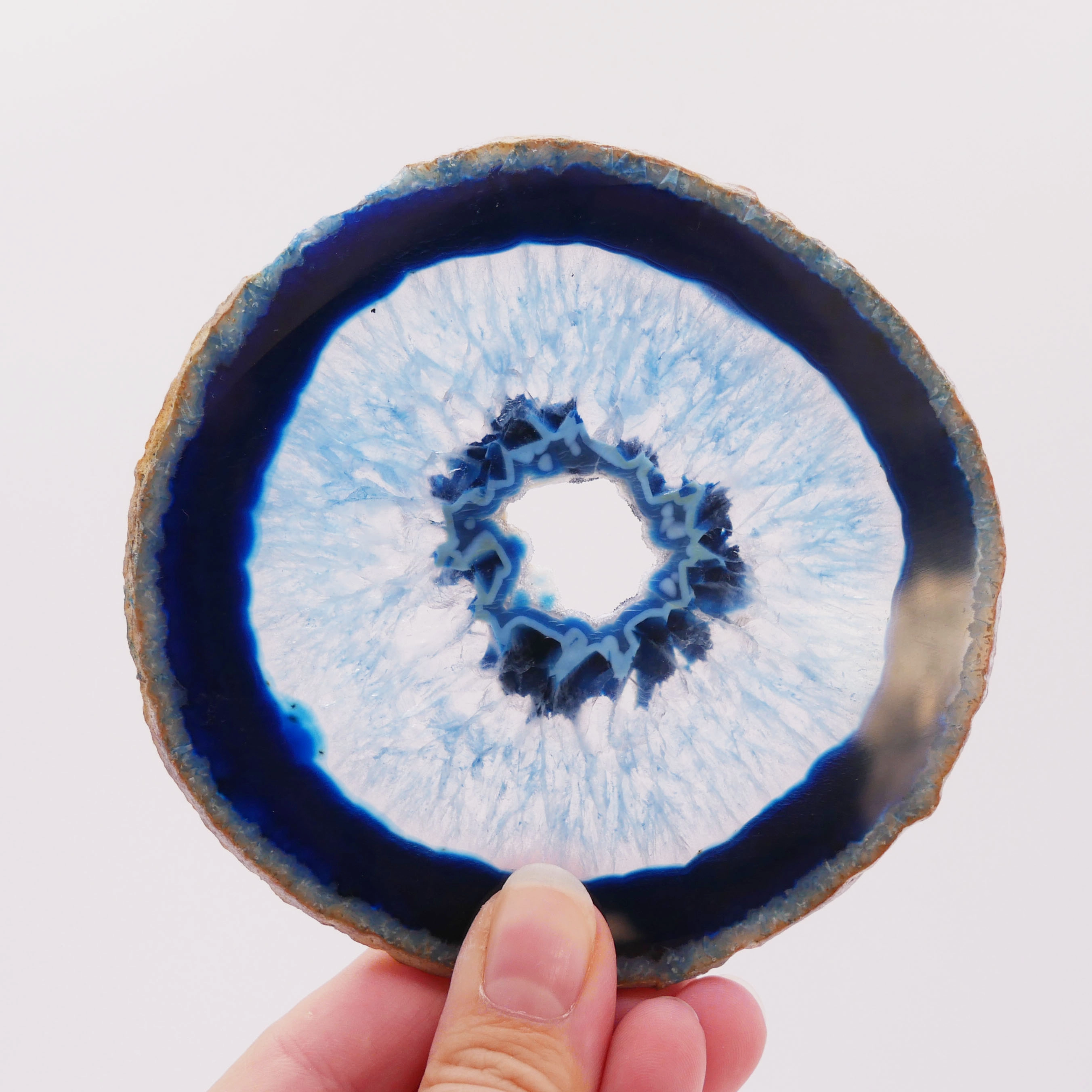 Ten niebieski plaster agatu (nr 048) wyróżnia się wyjątkową estetyką, wynikającą z połączenia intensywnego koloru, naturalnego wzoru i precyzyjnego polerowania. Doskonale sprawdzi się jako unikatowa podstawka pod cenne drobiazgi, element przyciągający wzrok w dekoracji wnętrz (szczególnie efektowny pod światło) lub jako cenny okaz kolekcjonerski dla miłośników piękna minerałów.