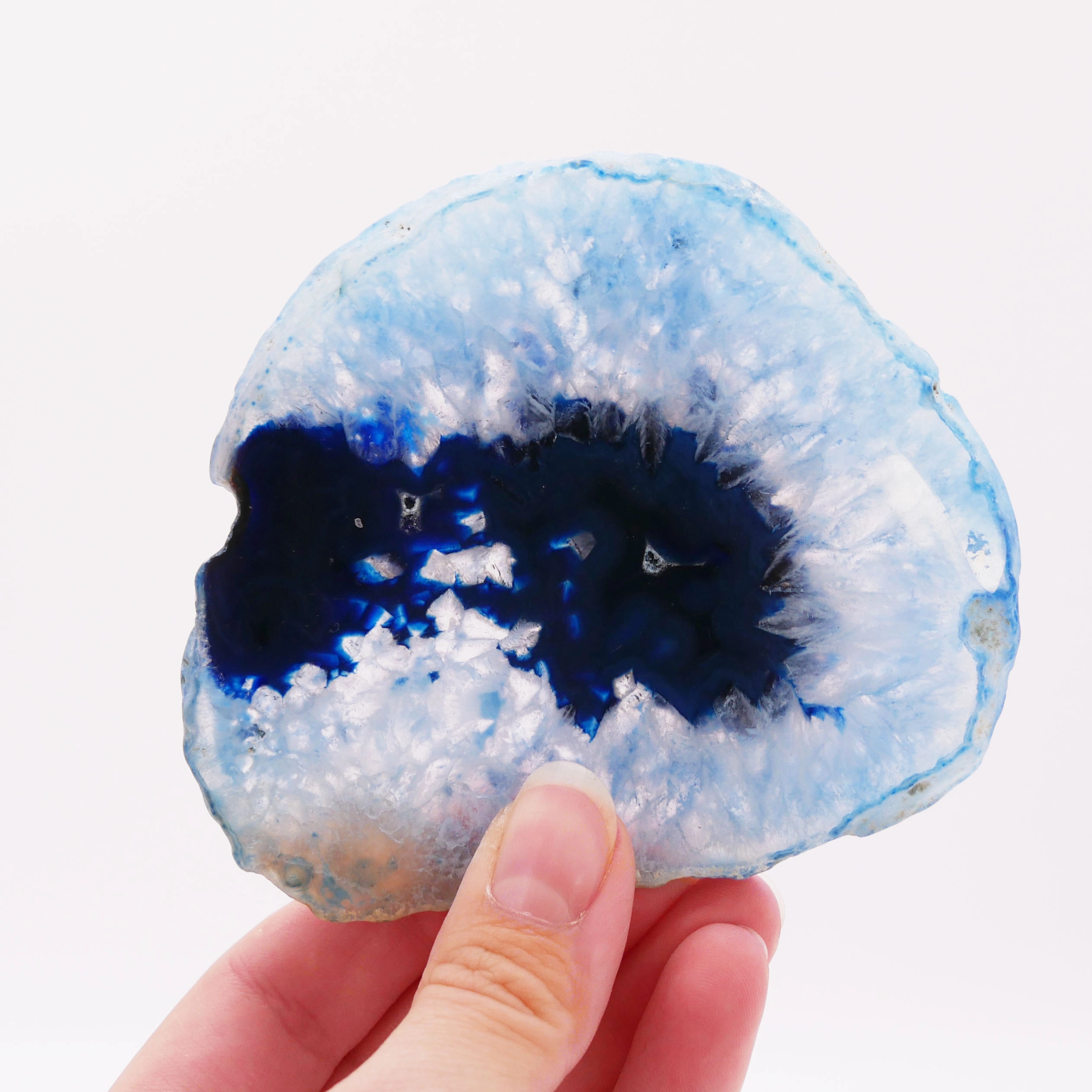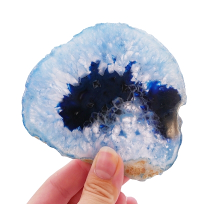 Ten kamień to efektowna dekoracja, która zachwyca grą światła przenikającego przez półprzezroczystą strukturę. Jego żywa kolorystyka przyciąga wzrok, czyniąc go idealnym kandydatem na ekskluzywną podstawkę, ozdobę witrażową lub cenny element kolekcji. Wnosi do wnętrza energię spokoju i orzeźwienia, kojarzoną z błękitem.