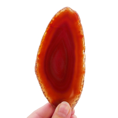 Ten kamień jest wyjątkowym elementem dekoracyjnym, który najpełniej ukazuje swoje piękno pod wpływem światła, ujawniając prześwitującą strukturę. Jego ciepła kolorystyka wnosi do wnętrza energię i optymizm. Doskonale sprawdzi się jako oryginalna podstawka, efektowna ozdoba okienna lub cenny nabytek do kolekcji, prezentujący różnorodność agatów.